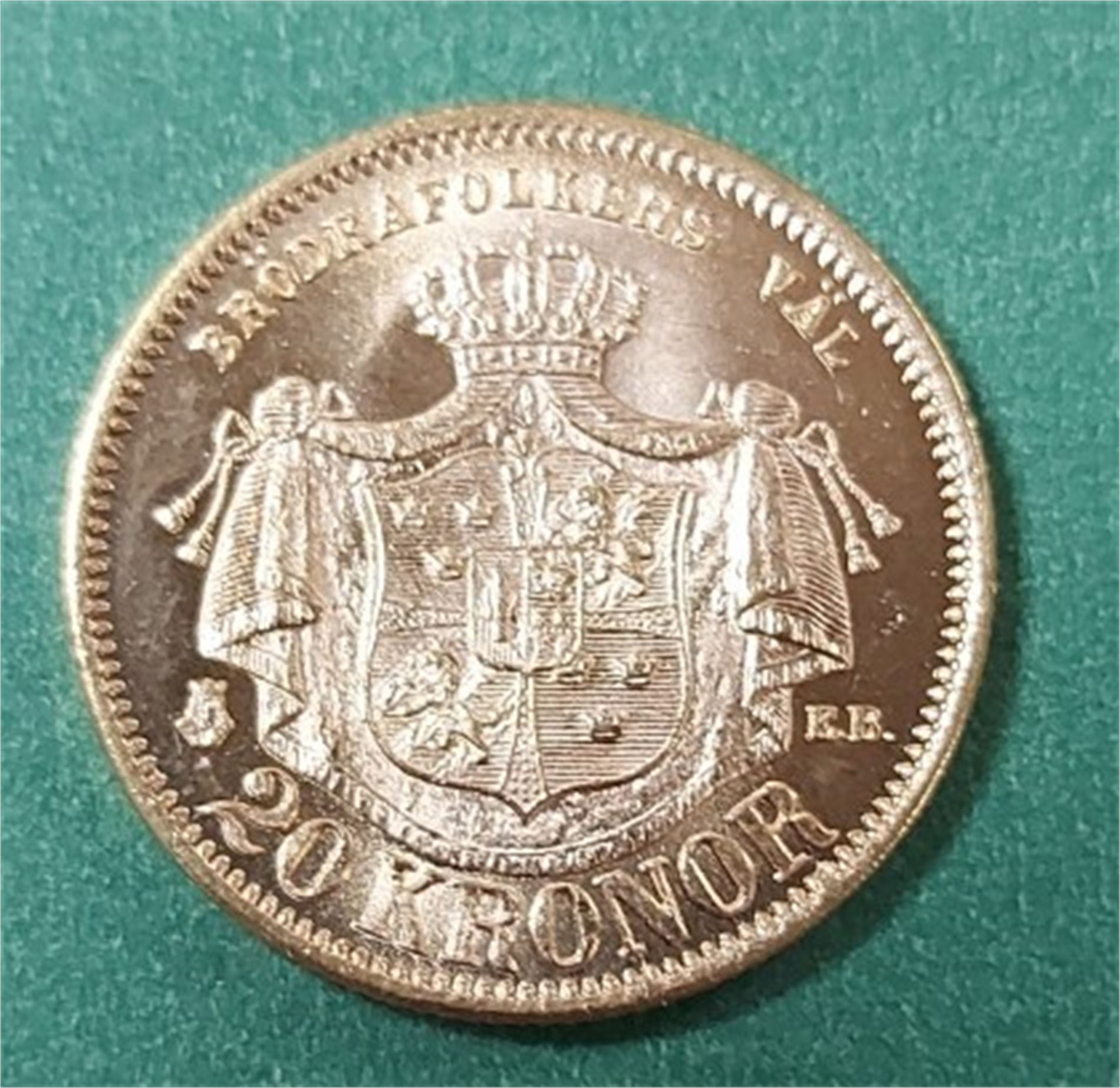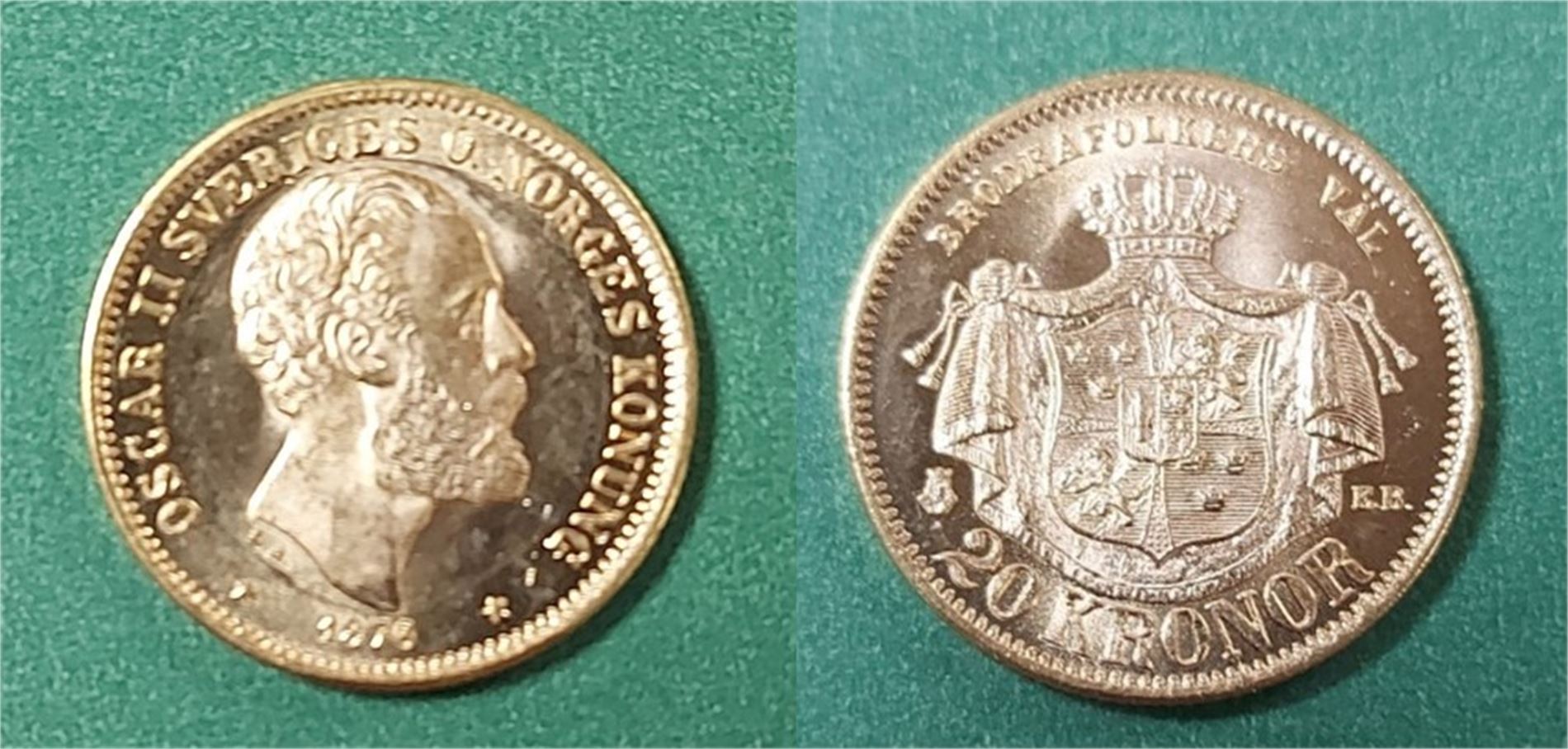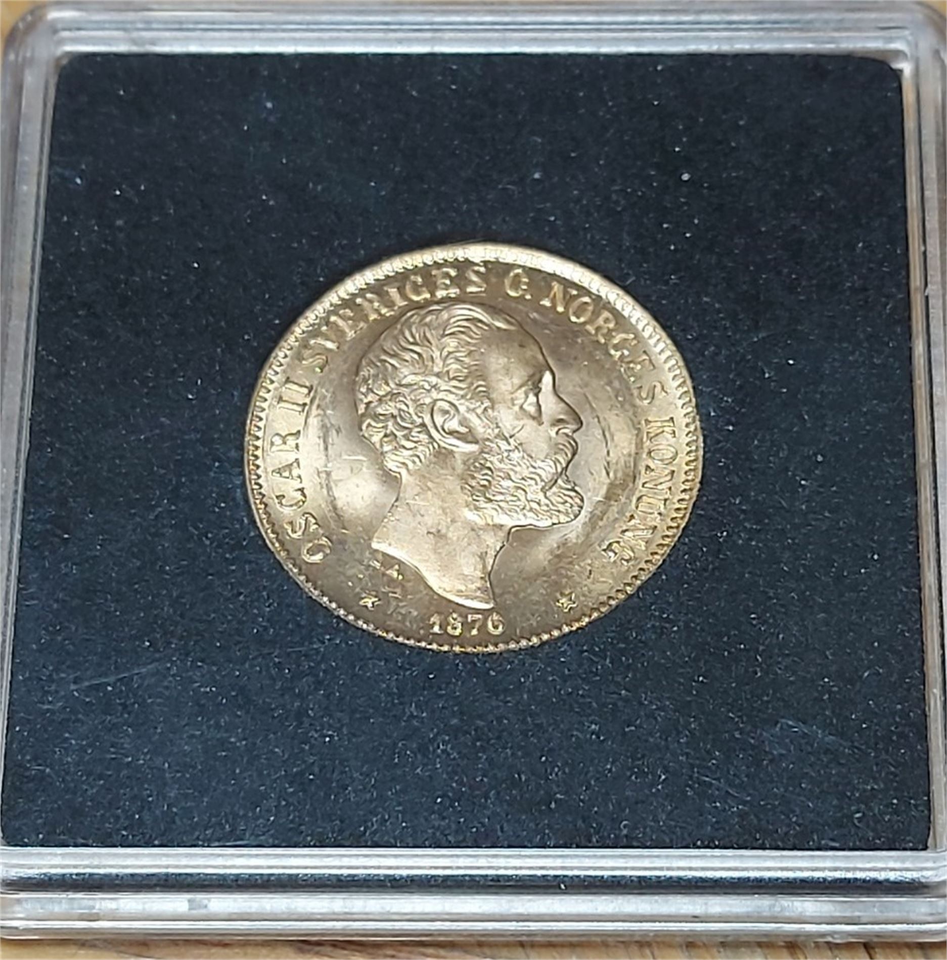SVERIGE OSCAR II 20 kr 1876 8.96gr, 0.90 guld, fin! (Kv 01)