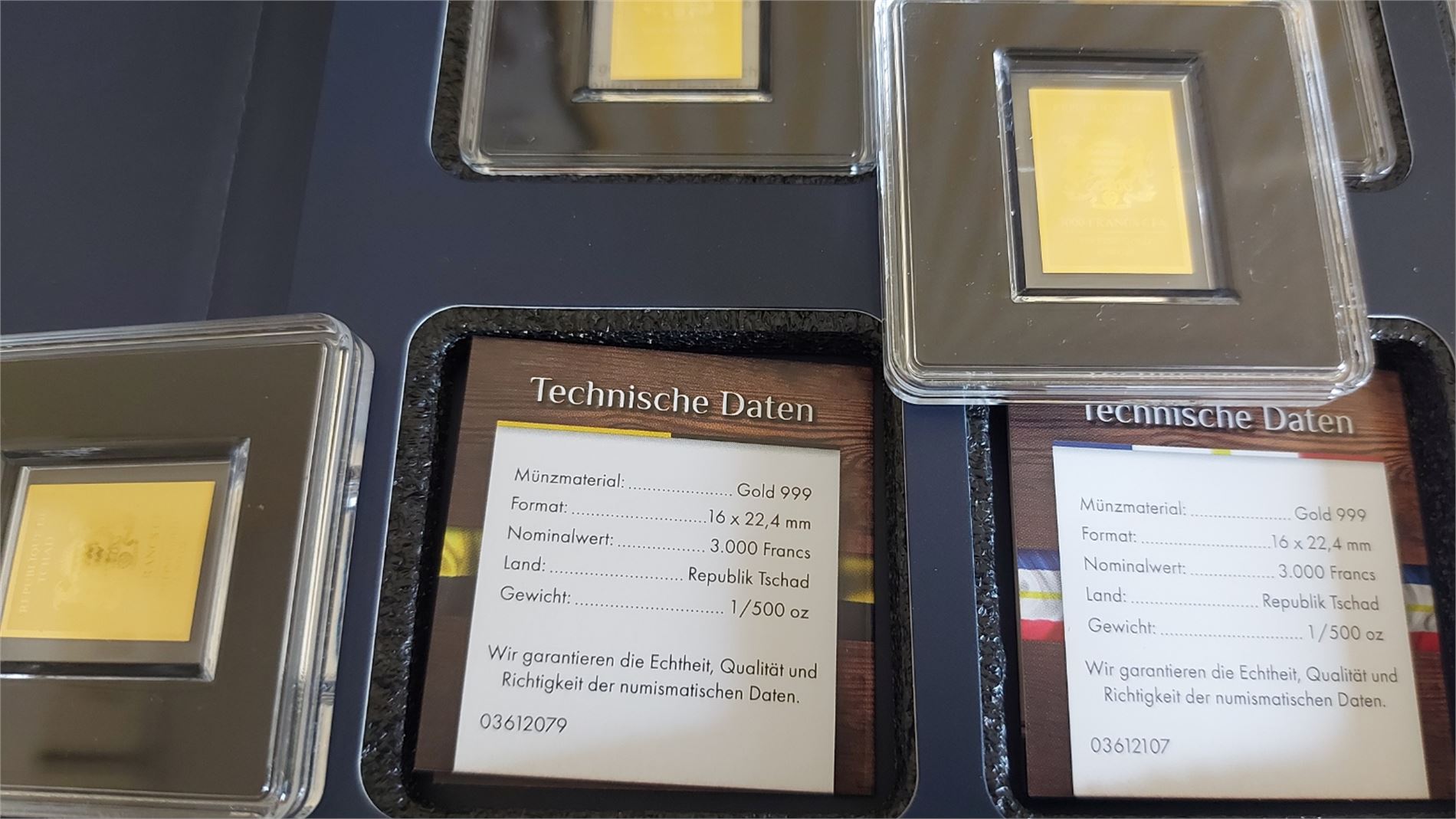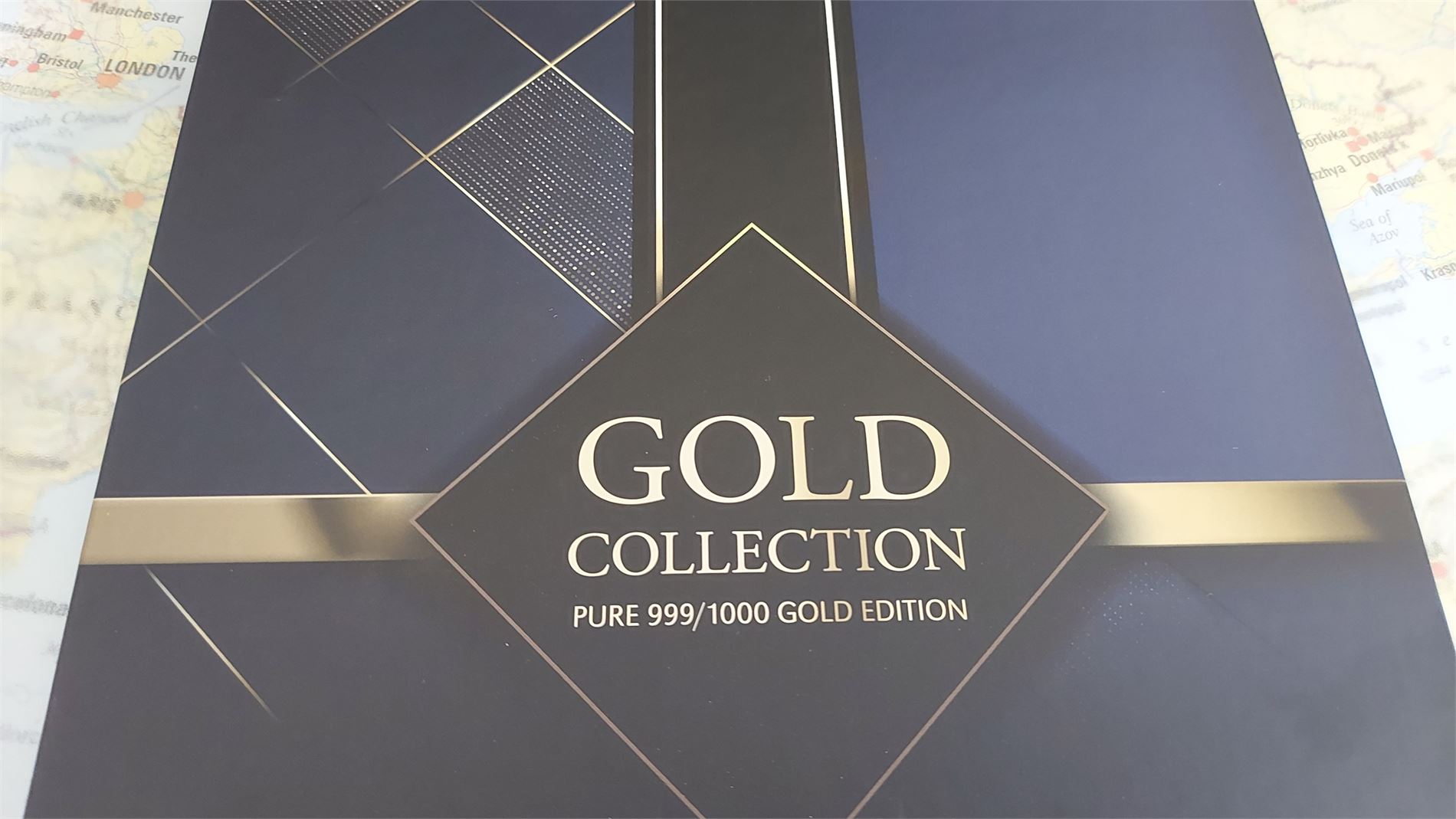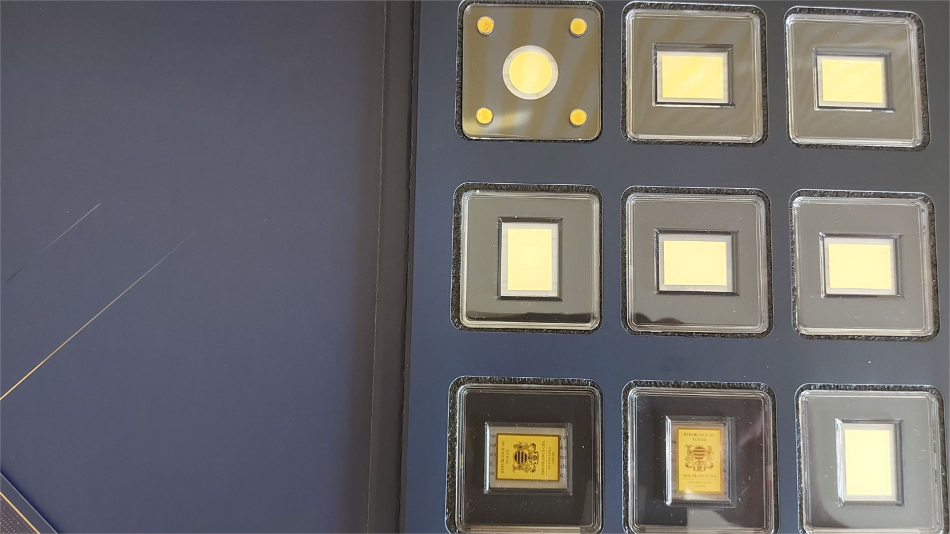 GOLD COLLECTION, parti nio (9) st "pure 999/1000 Gold Edition" medaljer i originalkapsyl med etikett. 1/500 oz st.