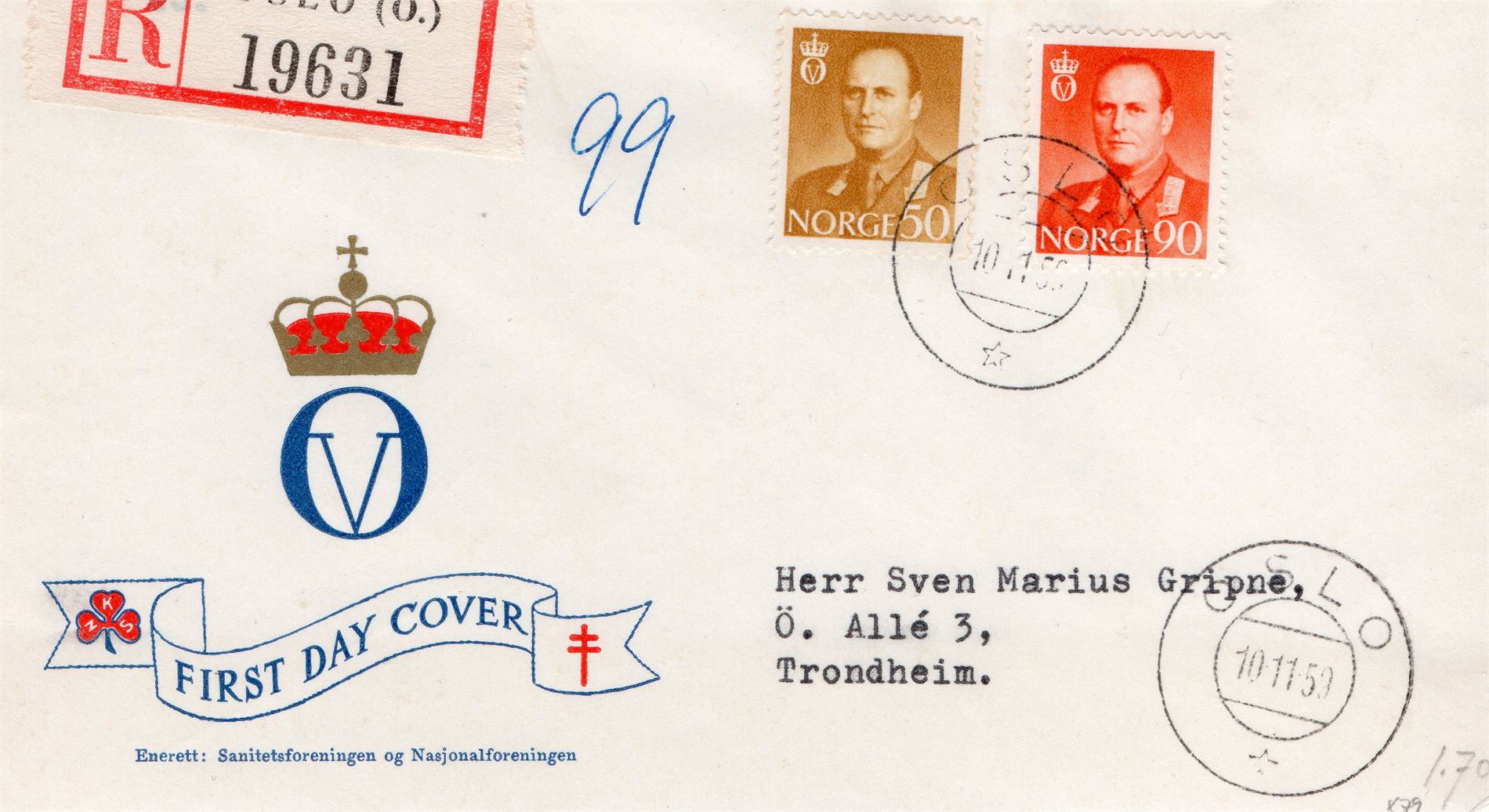 NORGE FDC, OLAV 10 november 1959 samt Norwex 1955