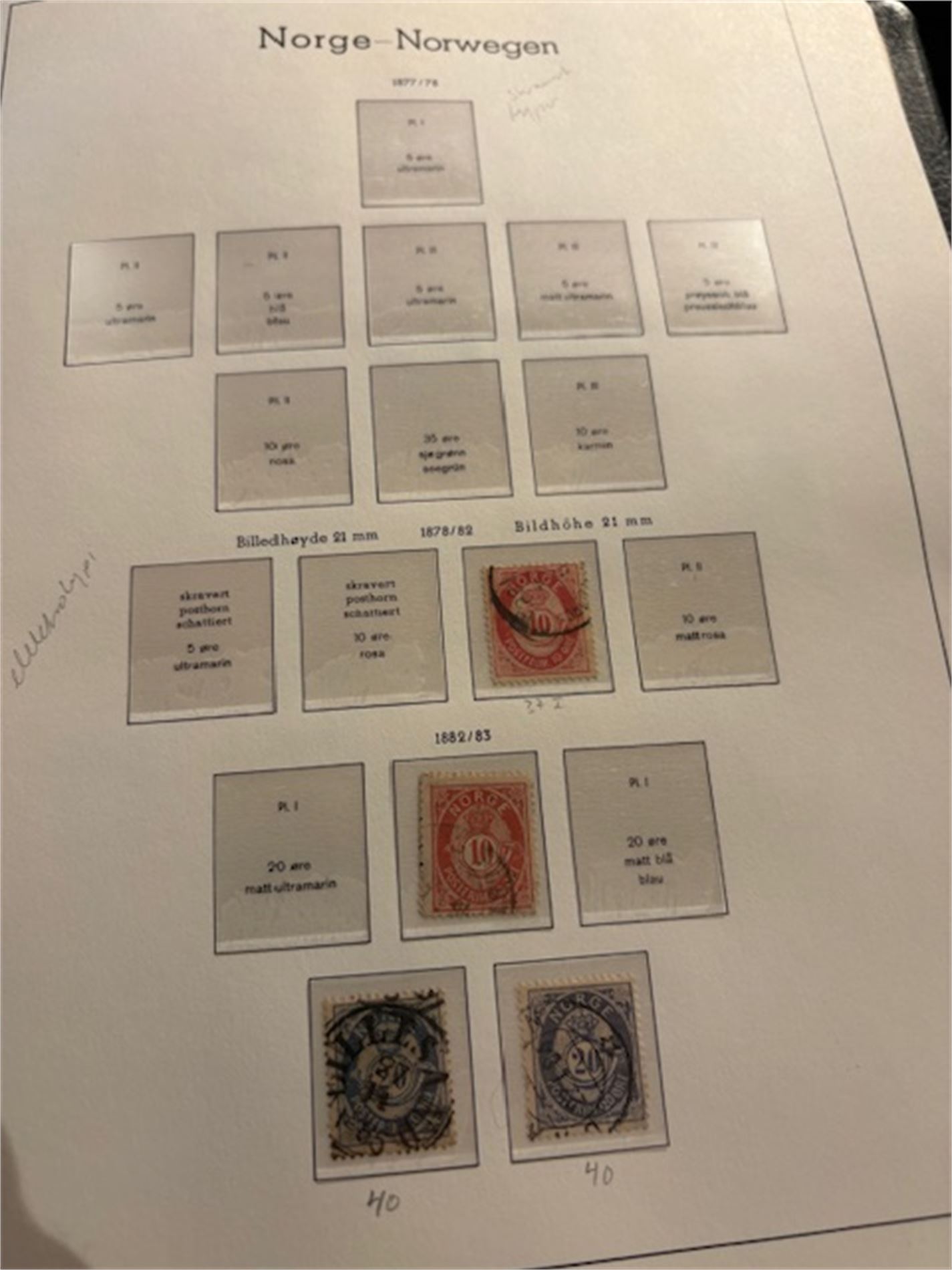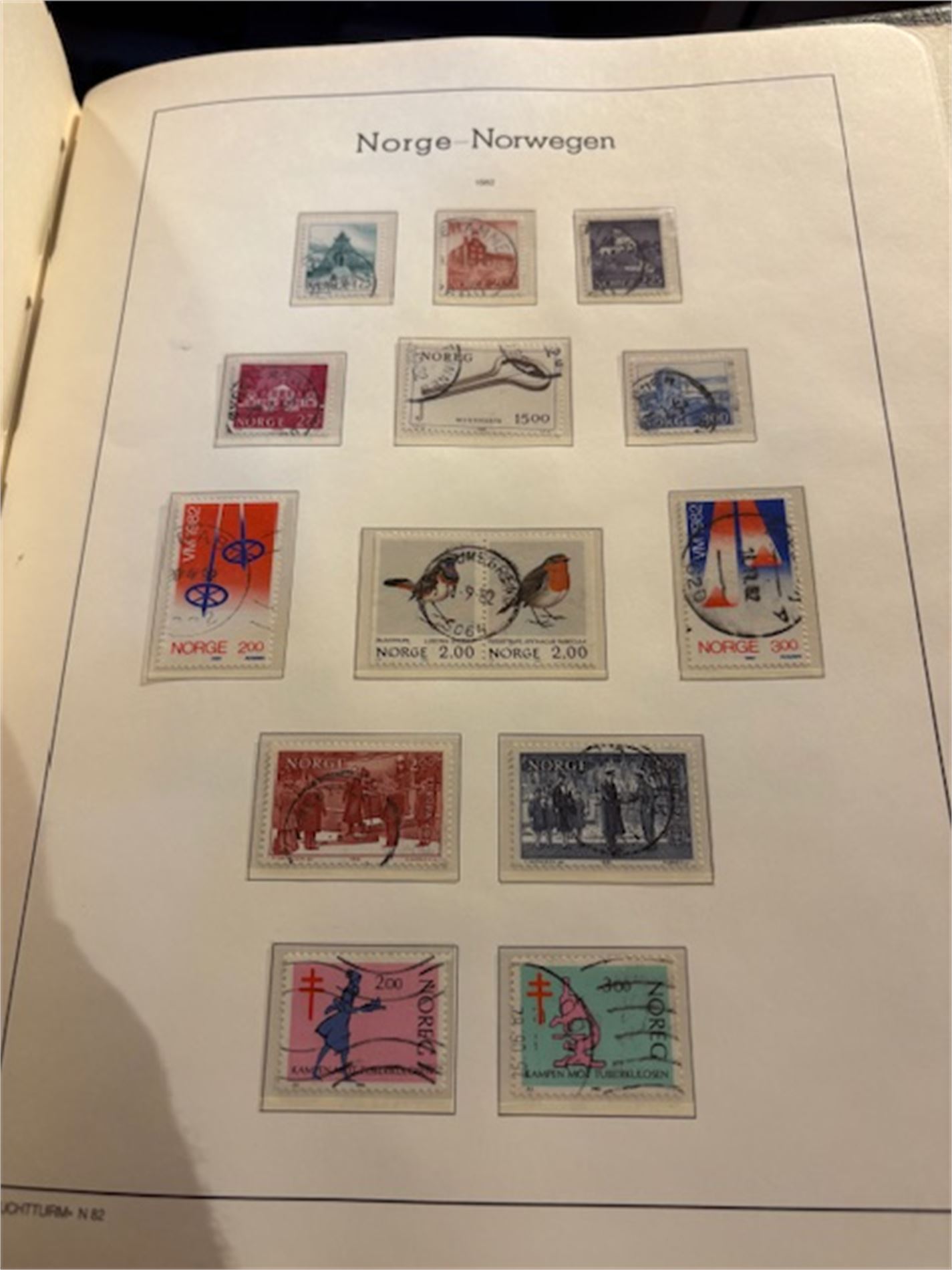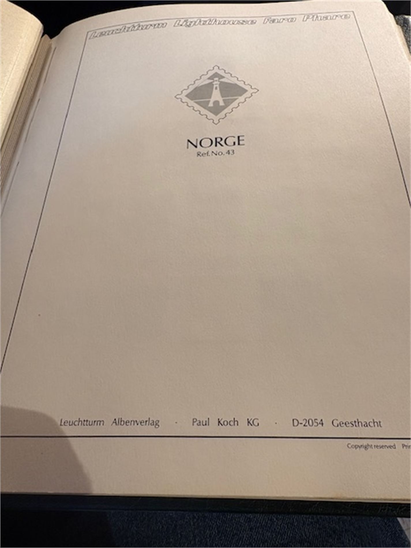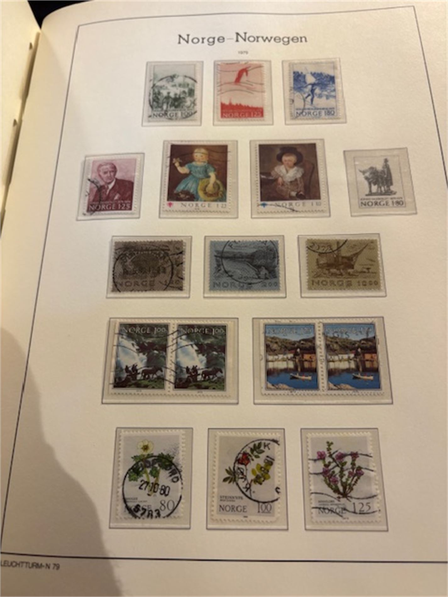 Leuchturmalbum Norge, med klemlommer fra 1855-1983. Både stemplet og postfrisk. Varierende stempelkvalitet. Langt fra komplett.