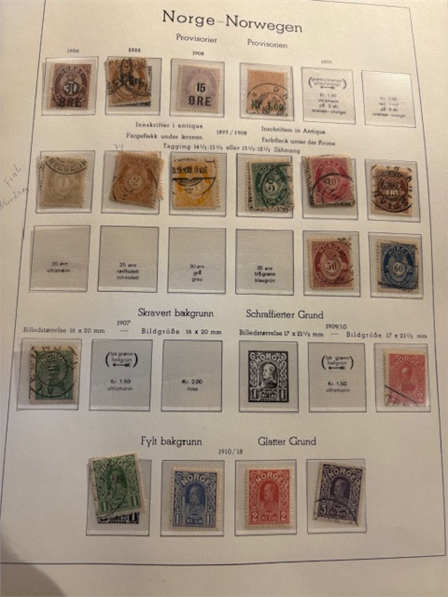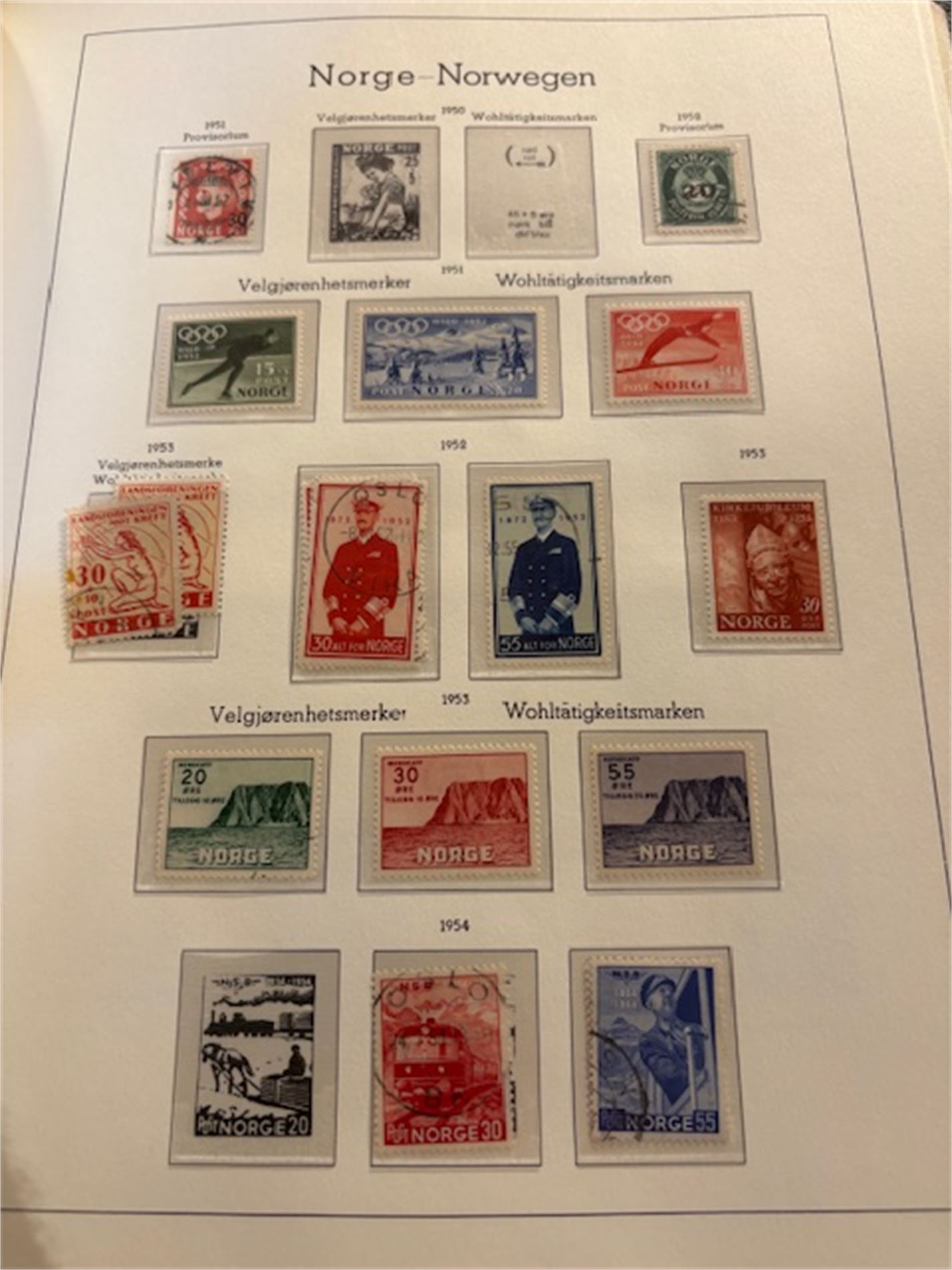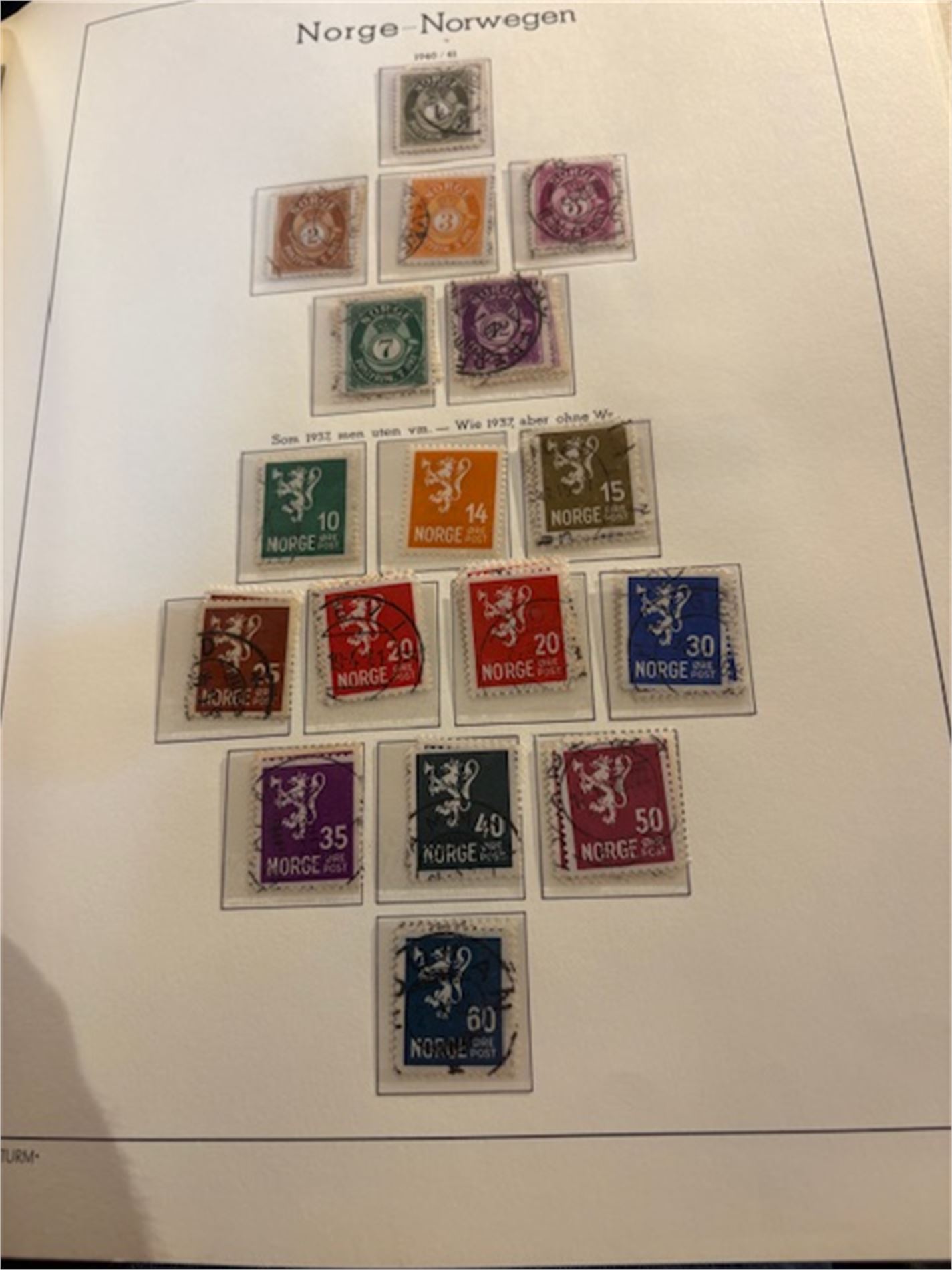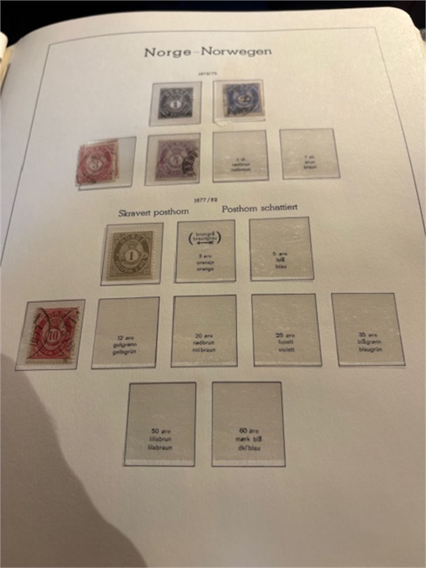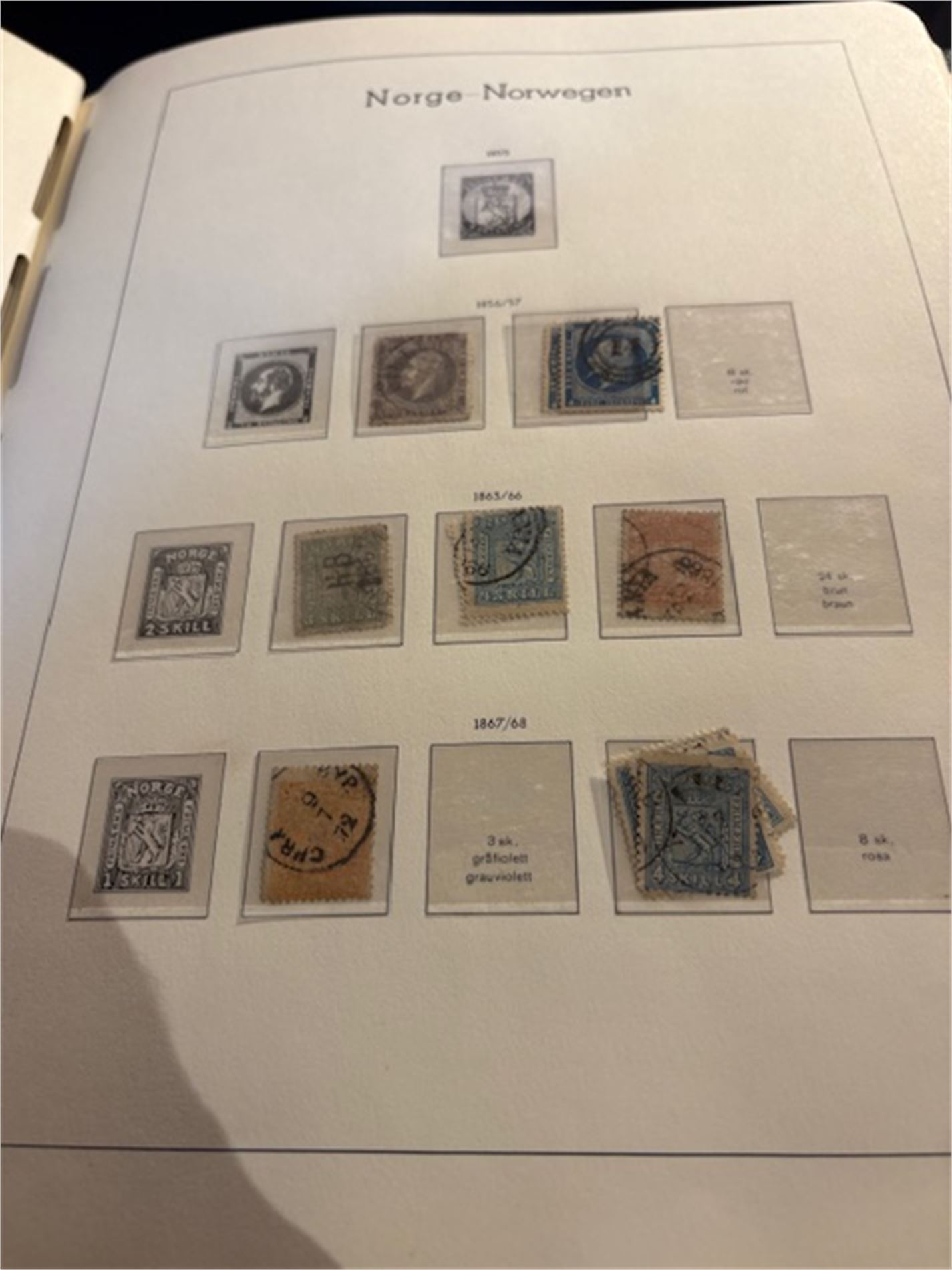 Leuchturmalbum Norge, med klemlommer fra 1855-1983. Både stemplet og postfrisk. Varierende stempelkvalitet. Langt fra komplett.