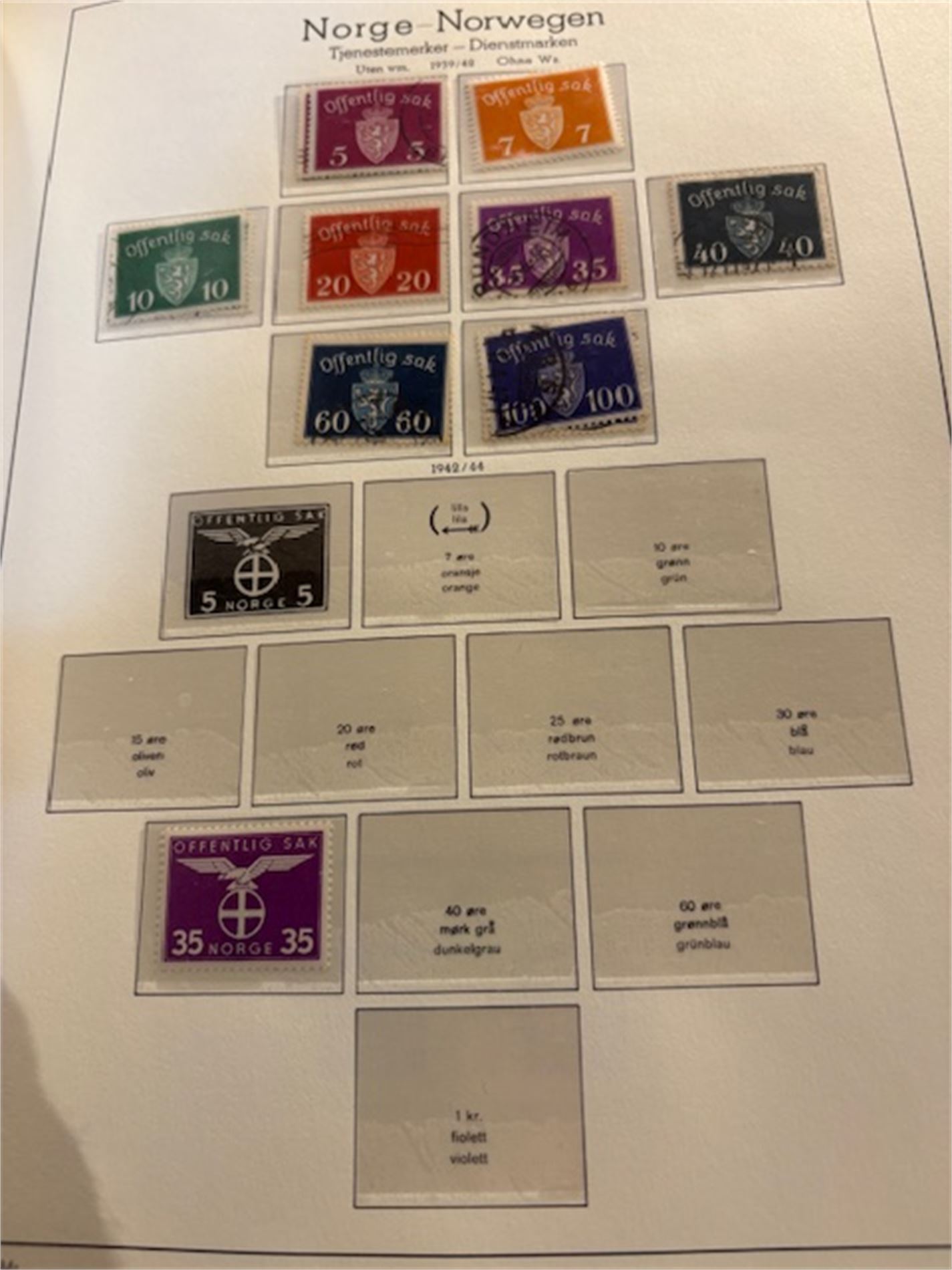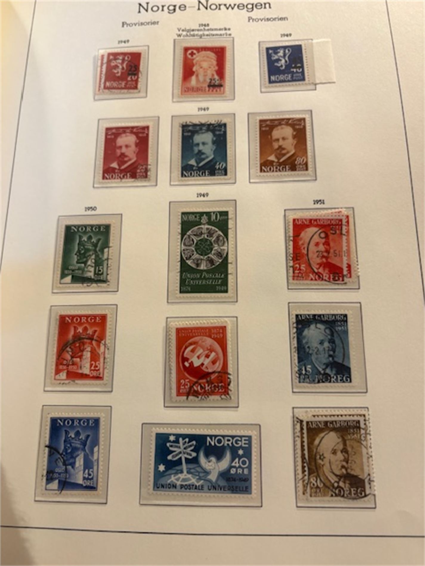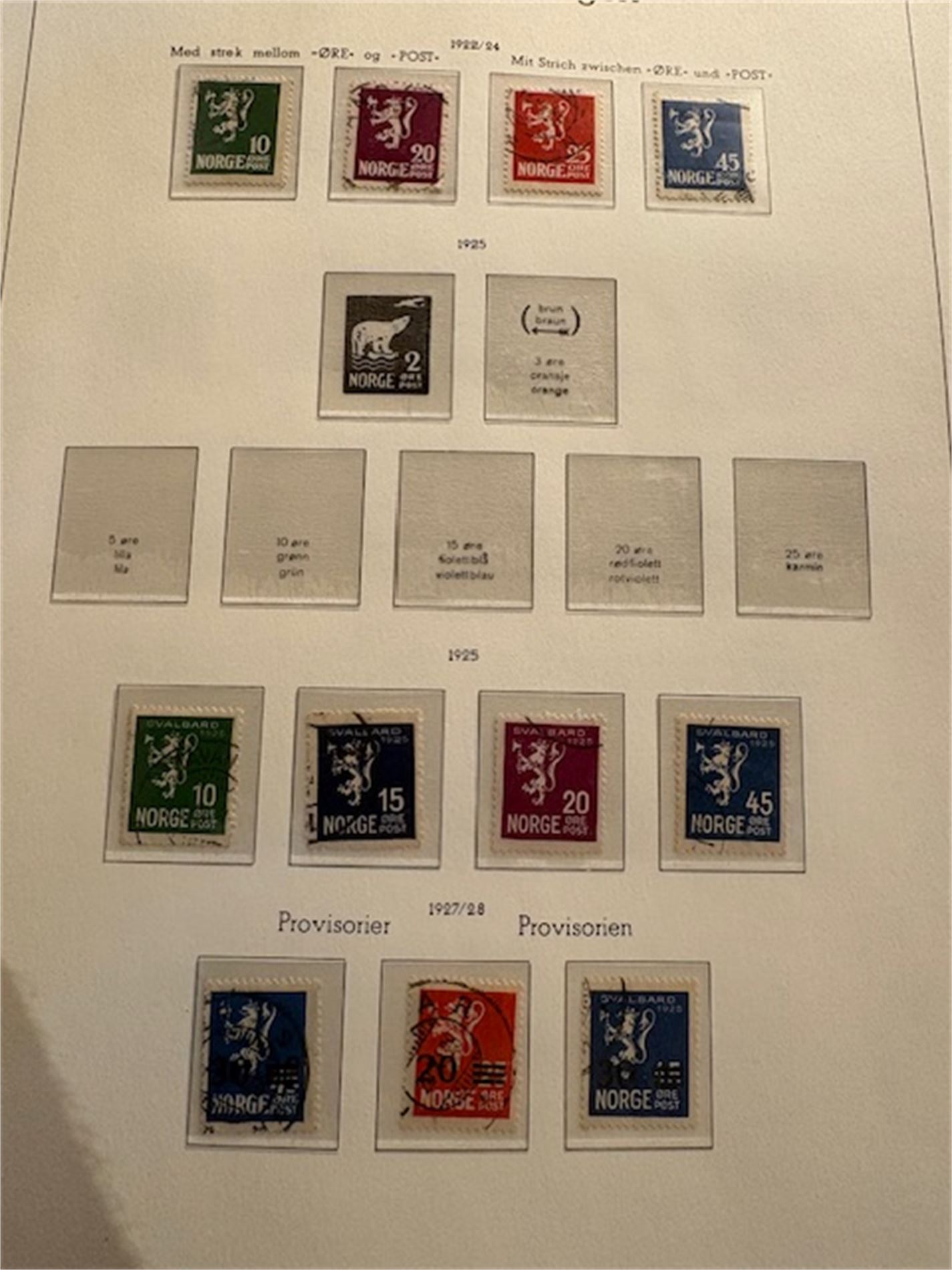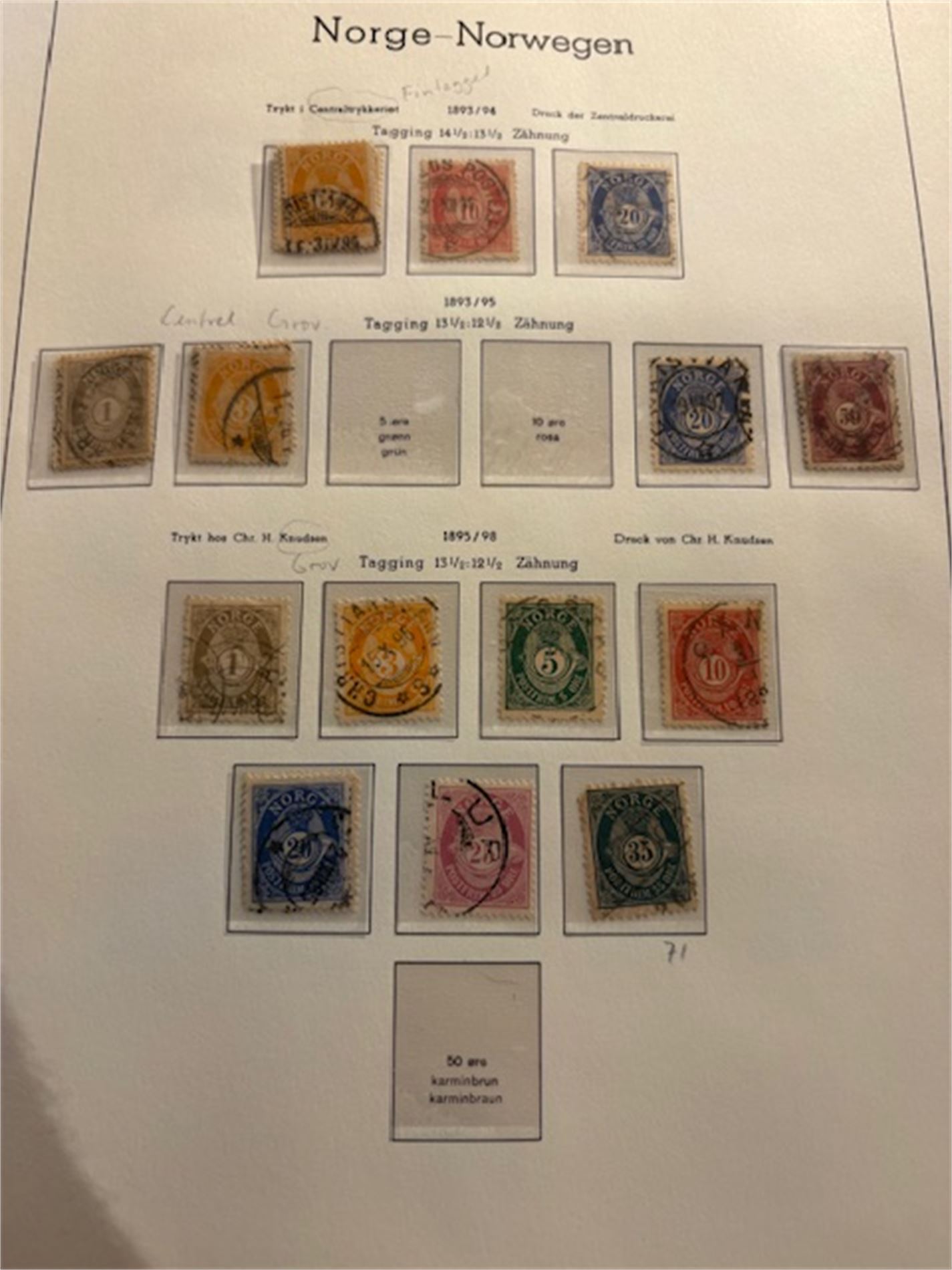 Leuchturmalbum Norge, med klemlommer fra 1855-1983. Både stemplet og postfrisk. Varierende stempelkvalitet. Langt fra komplett.