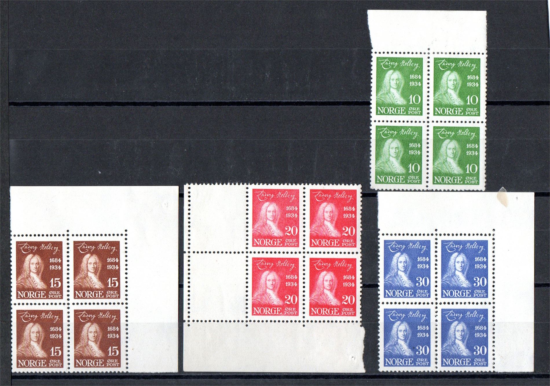 Serie med postfriske fireblokker. Hengselrest i margen.