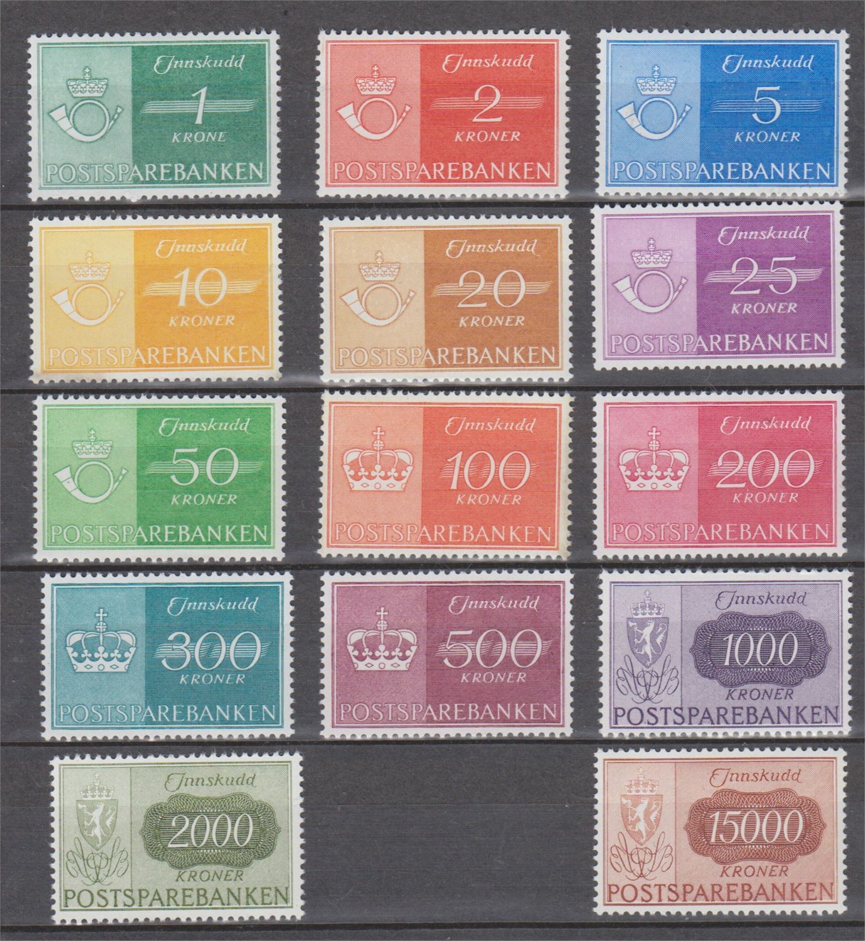 Postsparebanken verdi merker andre gruppe opp til 15000, mangler noen lavere verdier. Postfriske