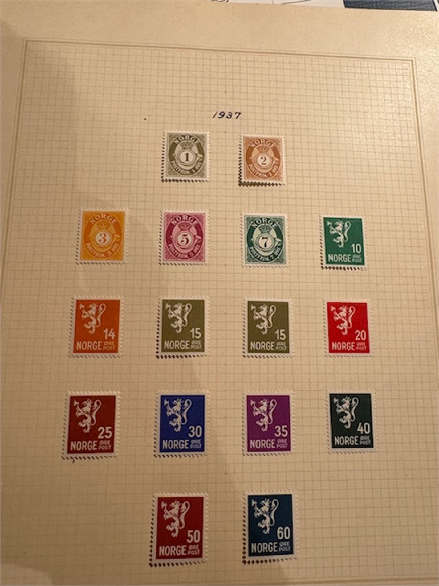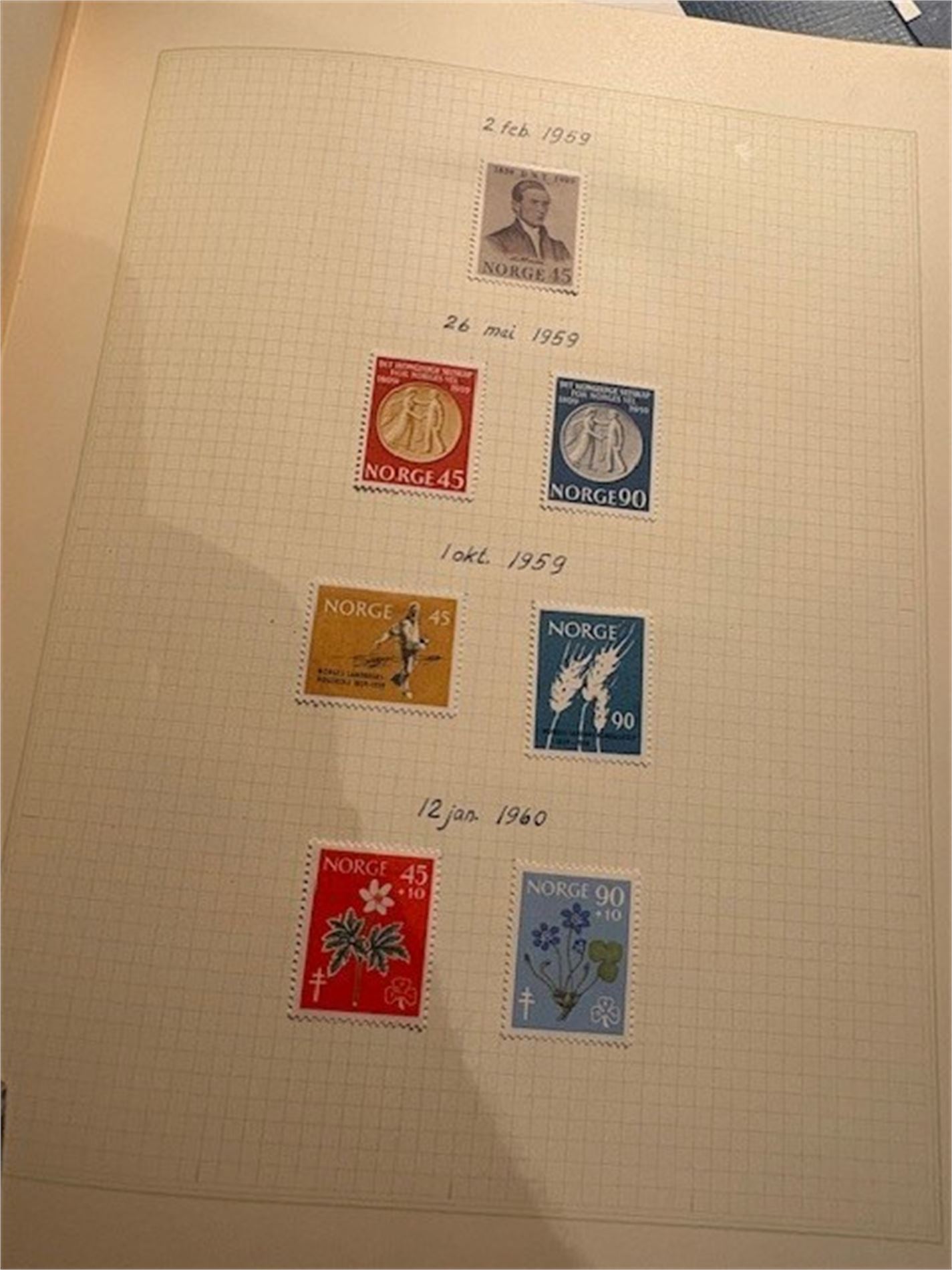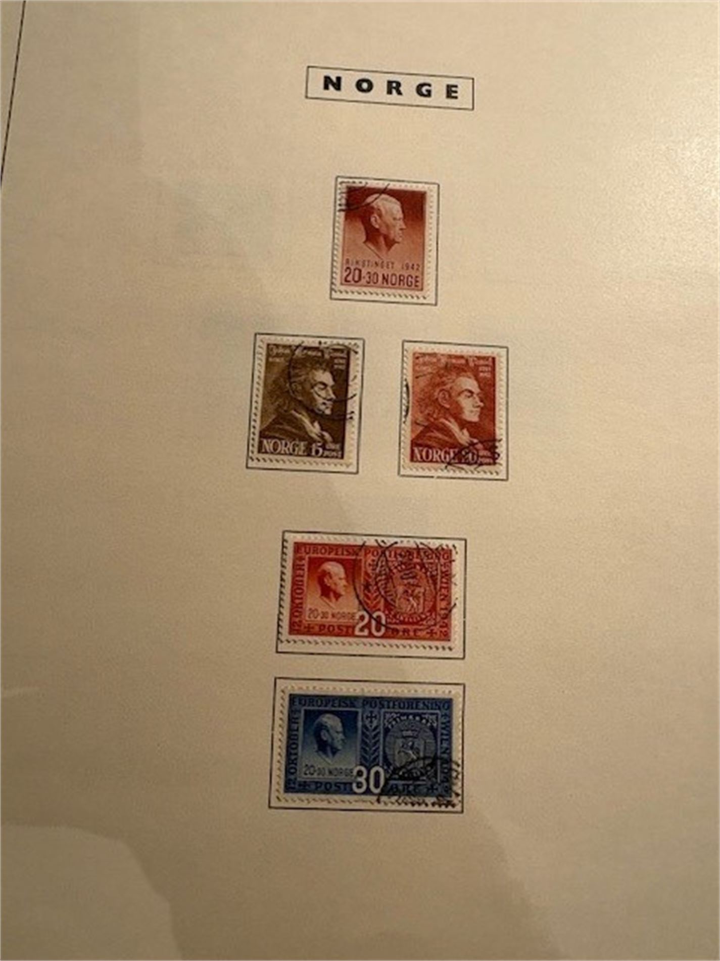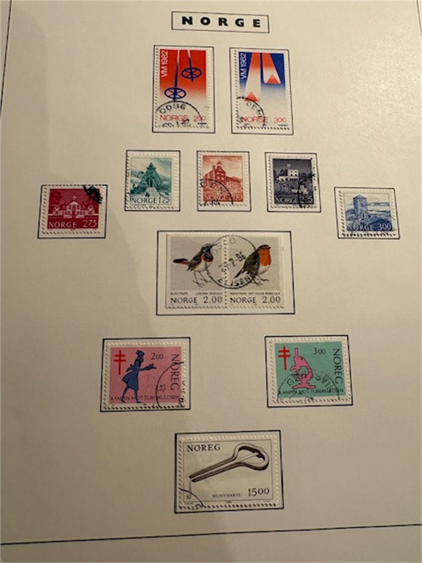 2: Ett album med hengslede norske frimerker fra 1937-mai 1982. Mangler de dyre merkene. Ellers så godt som komplett i perioden.