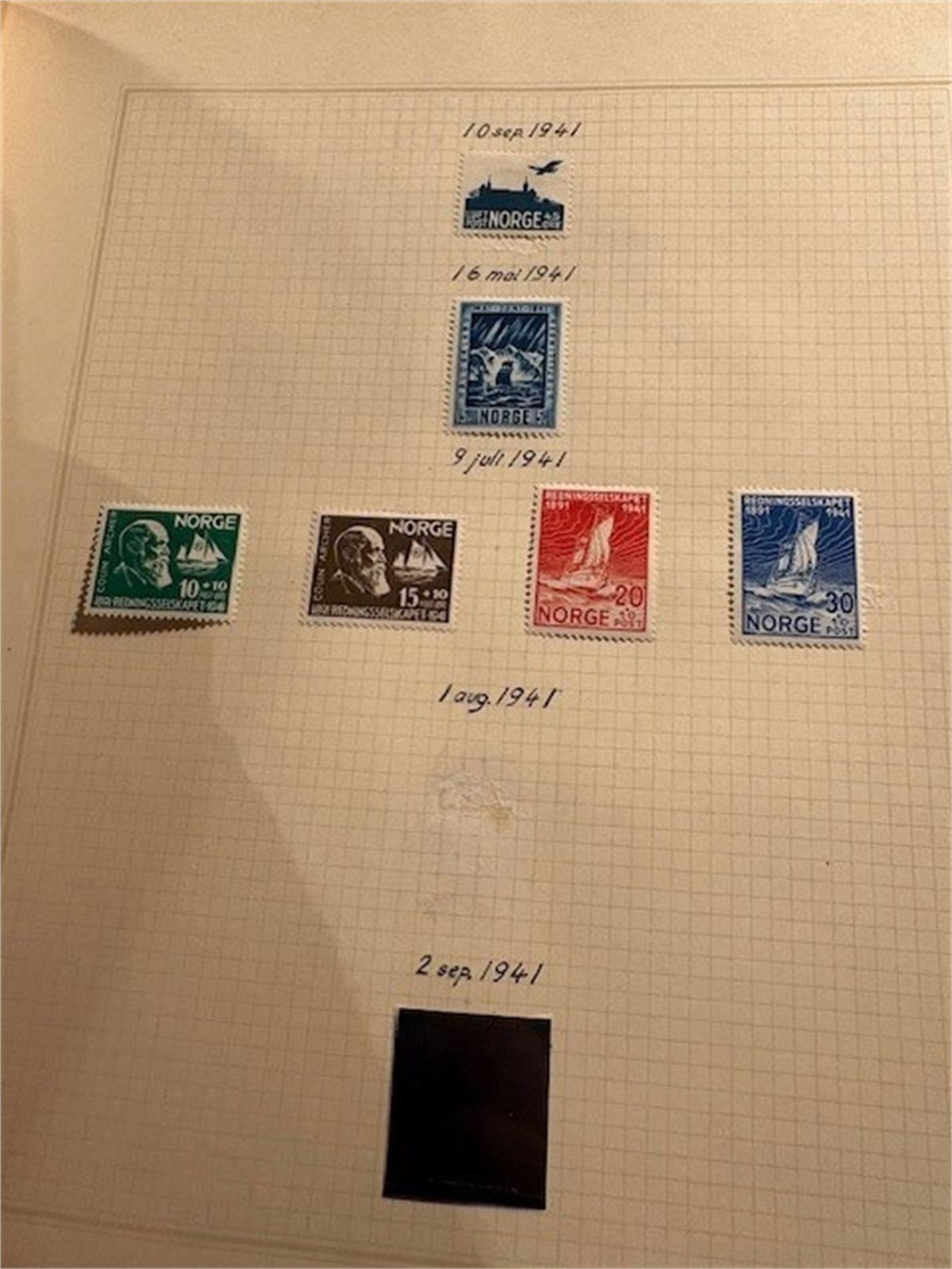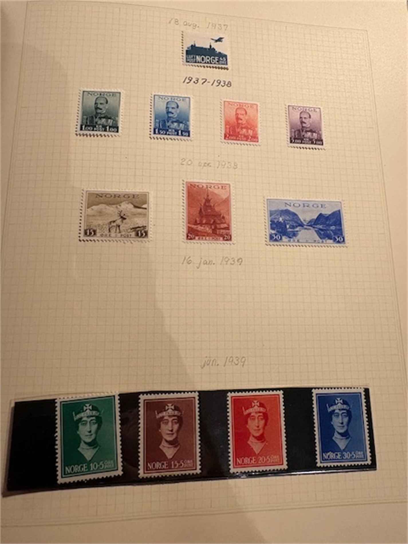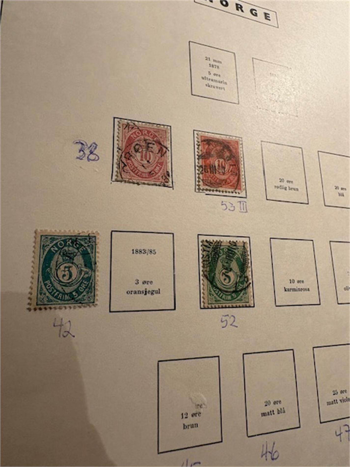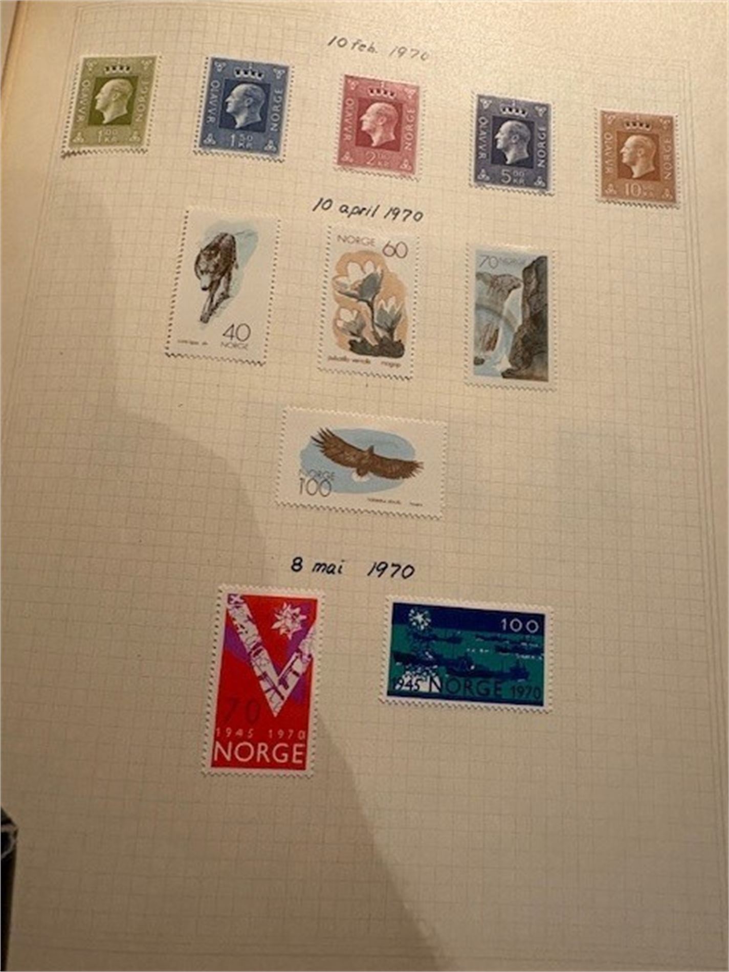 2: Ett album med hengslede norske frimerker fra 1937-mai 1982. Mangler de dyre merkene. Ellers så godt som komplett i perioden.