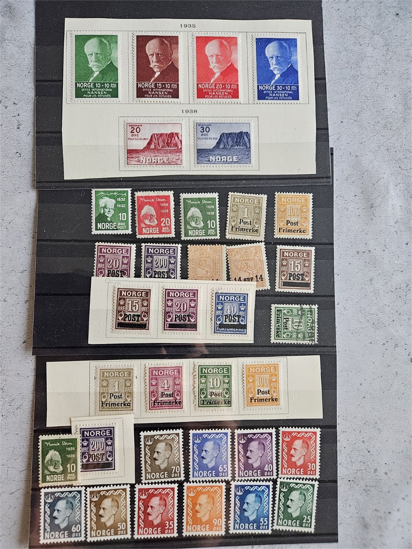 Norge - ubrukte norske merker ca 1935 - 1960, inkl Nansen I Norkapp II, portoprovisorier, en del ørevalører Håkon m.m. Høy katalogverdi postfrisk.