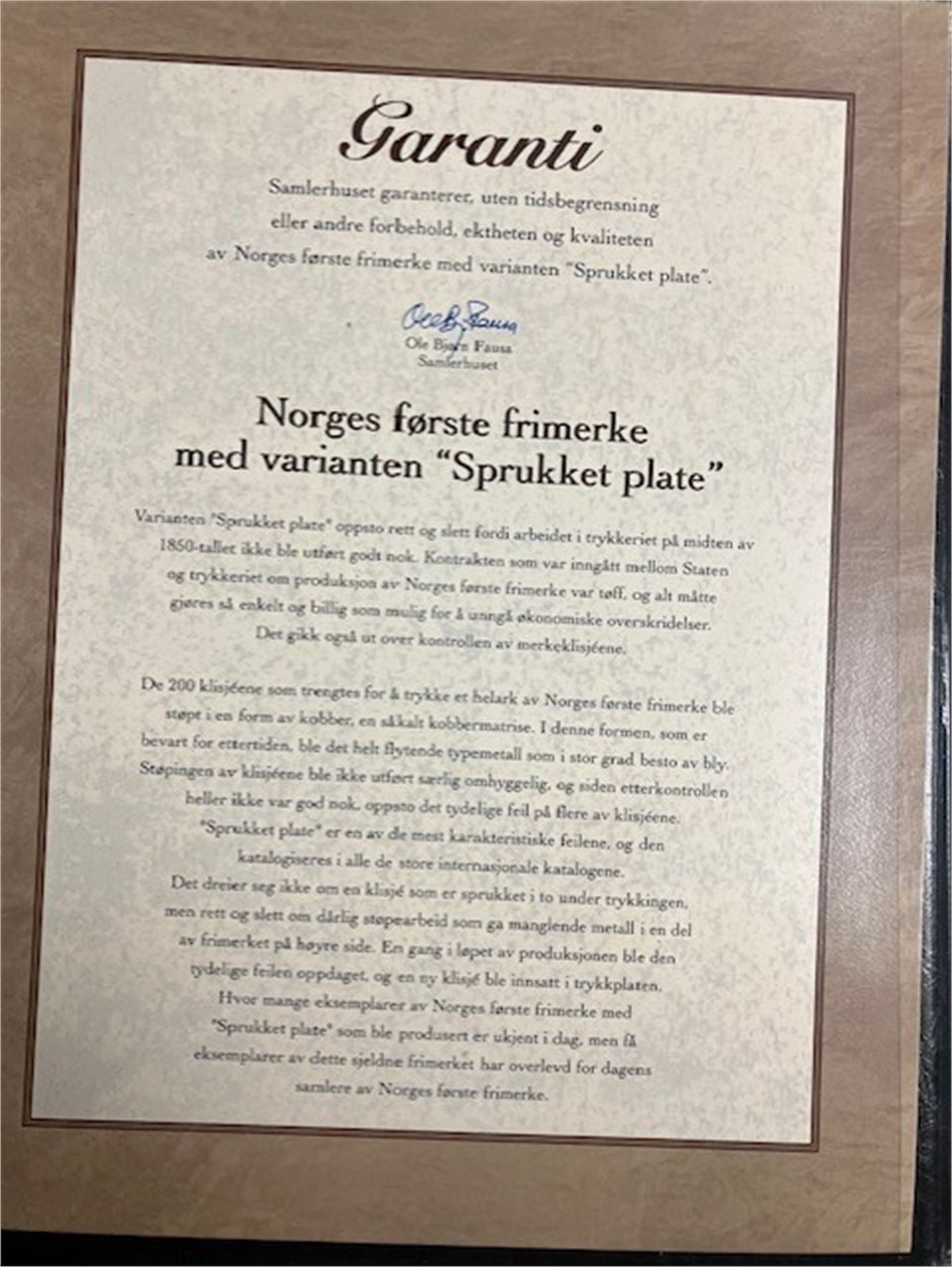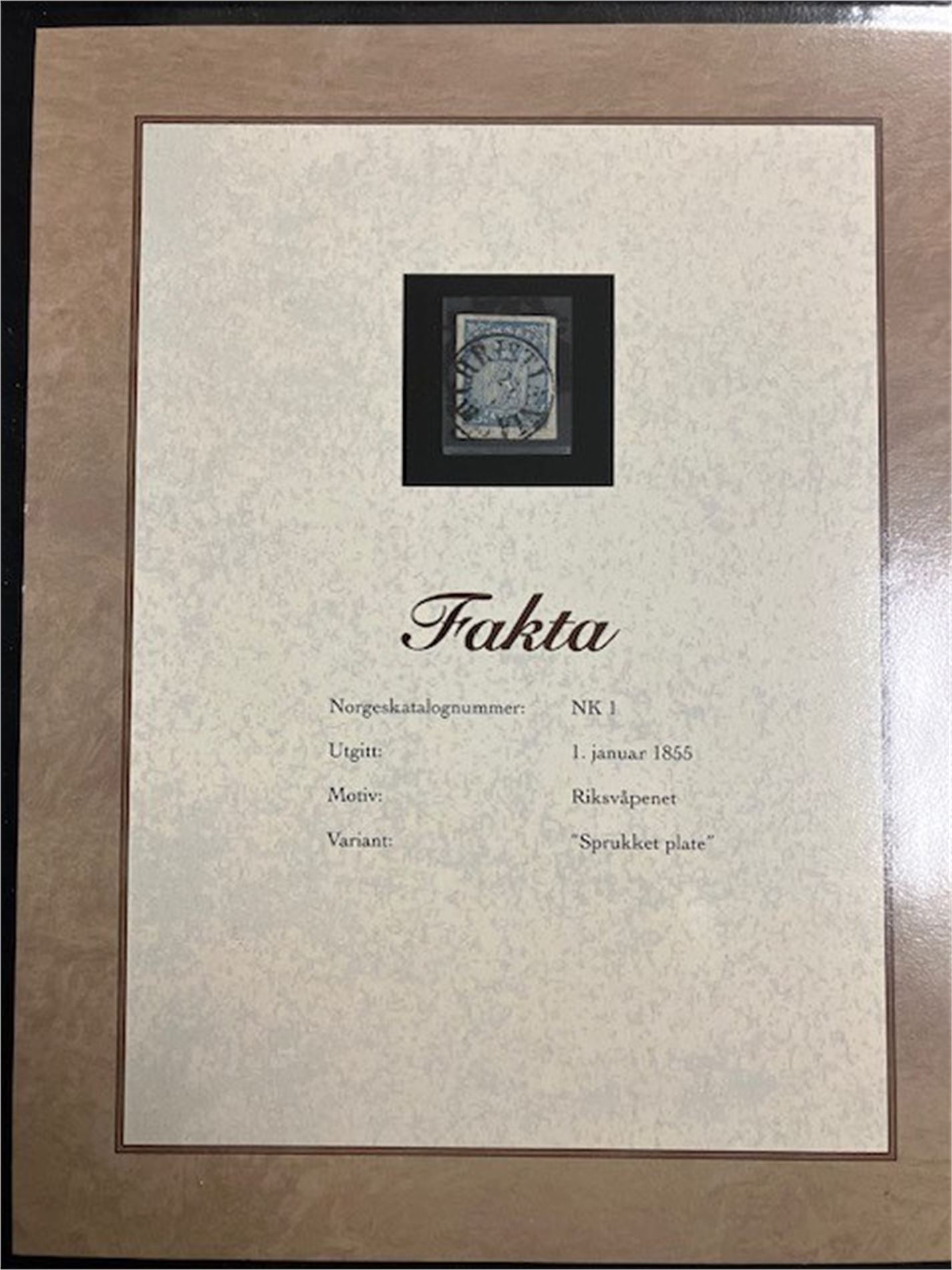 NK 1 med variant "Sprukket plate" i folder fra Samlerhuset