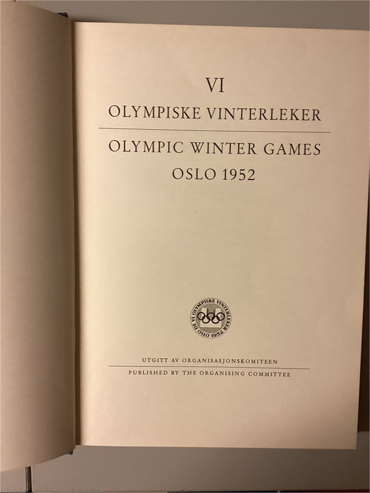 Olympia BOK - De VI Olympiske Vinterleker Oslo 1952, 270 sider innbundet bok utgitt av Orginasjonskomiteen for OL 1952
