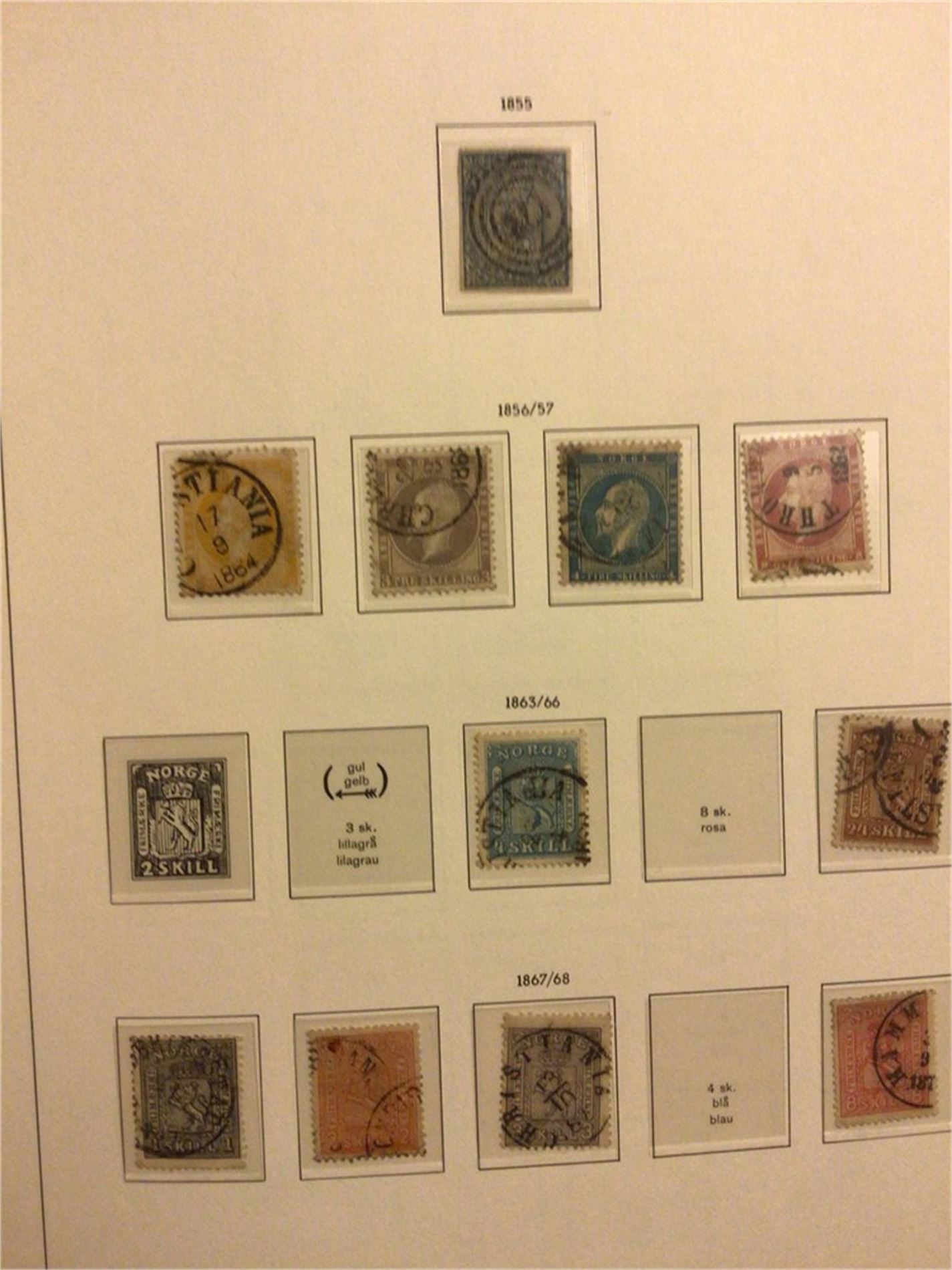 Samling 1855 - 1981 stemplet i Leuchtturm SF album, stemplet. Starter med 11 skillingsmrk. Noen pene stempler obsv.