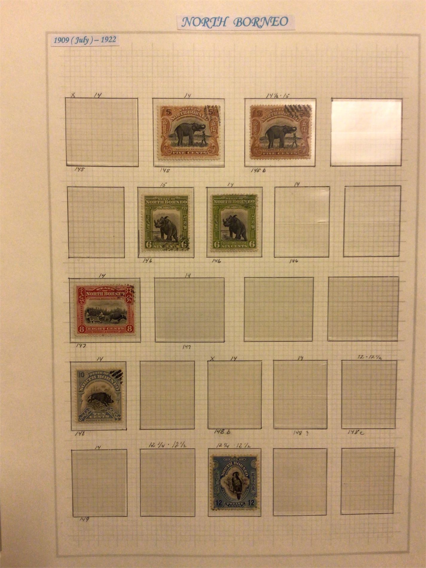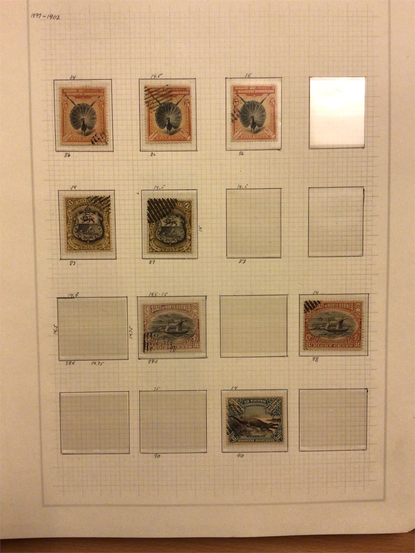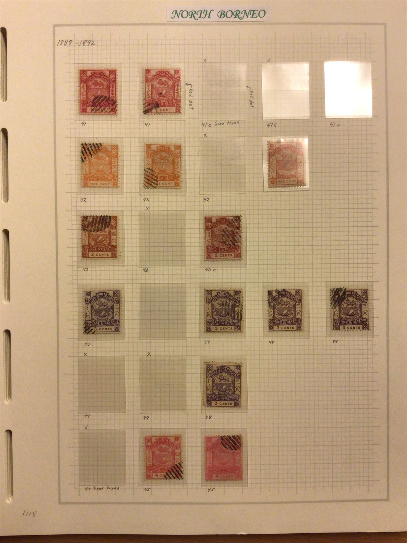 Br. Kolonier North Borneo og Sarawak, samling stemplede merker i Leuchtturm album