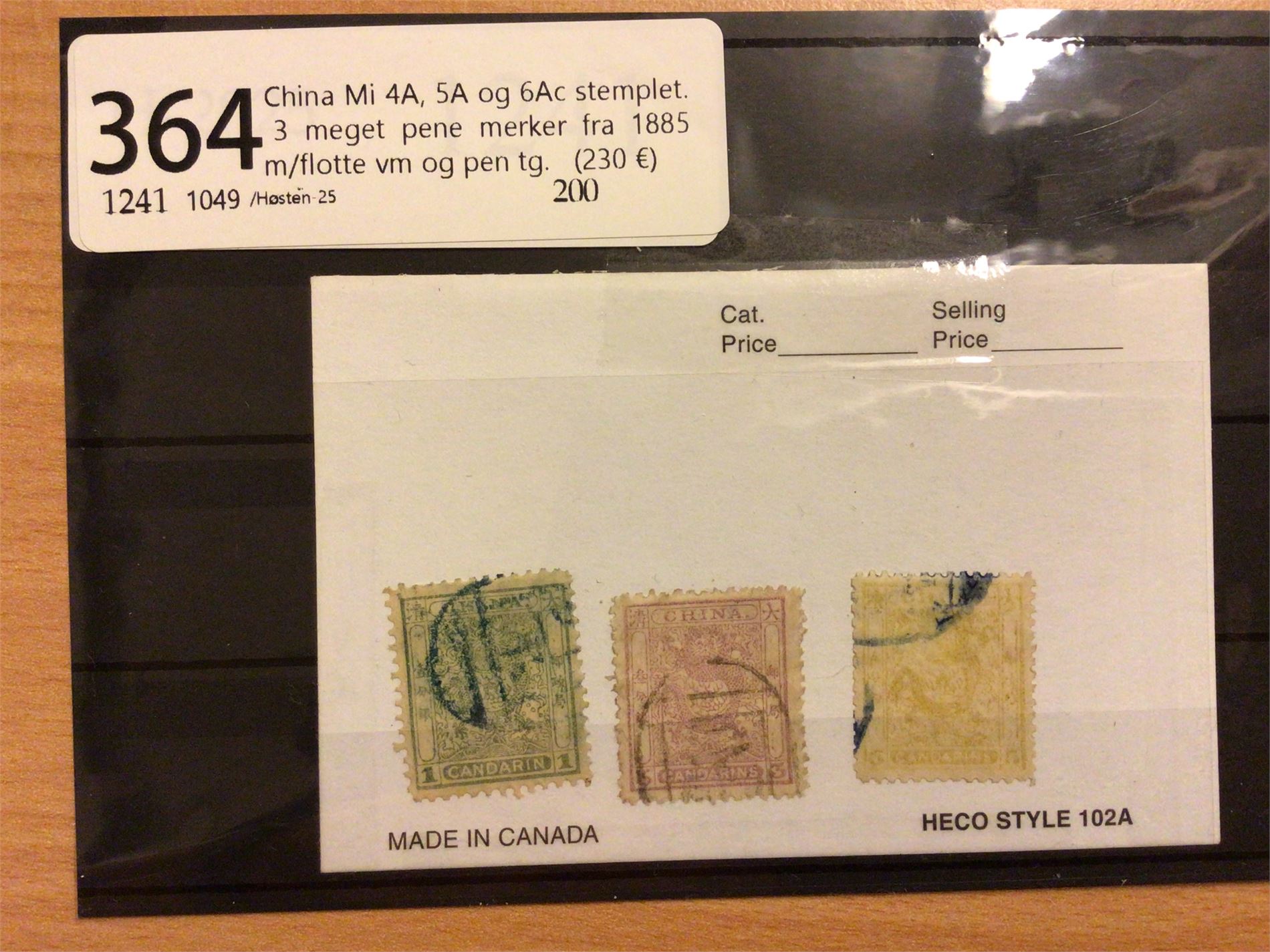 China Mi 4A, 5A og 6Ac stemplet. 3 meget pene merker fra 1885 m/flotte vm og pen tg. (230 €)