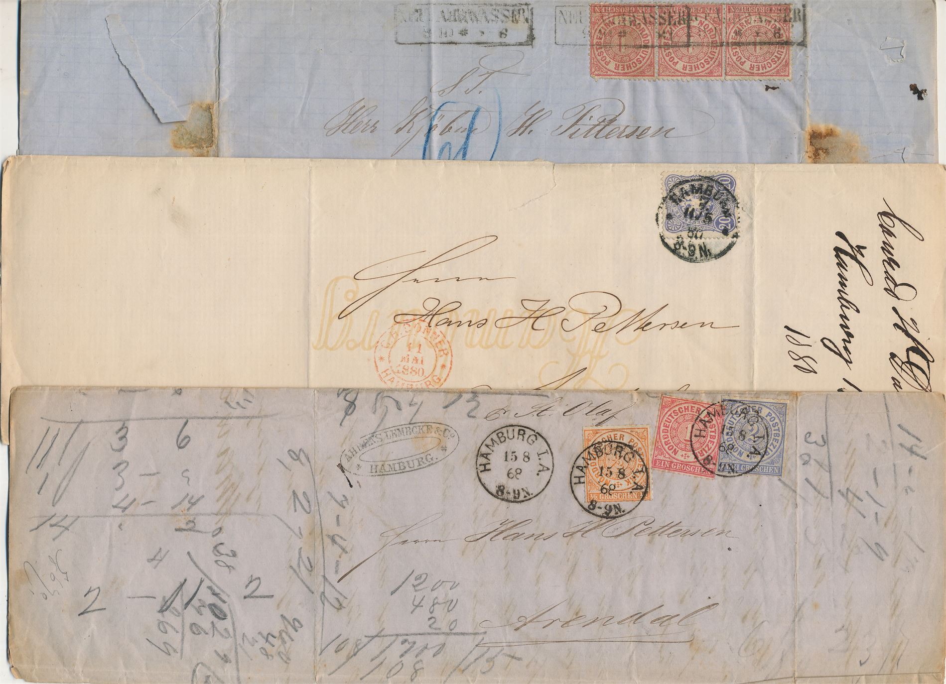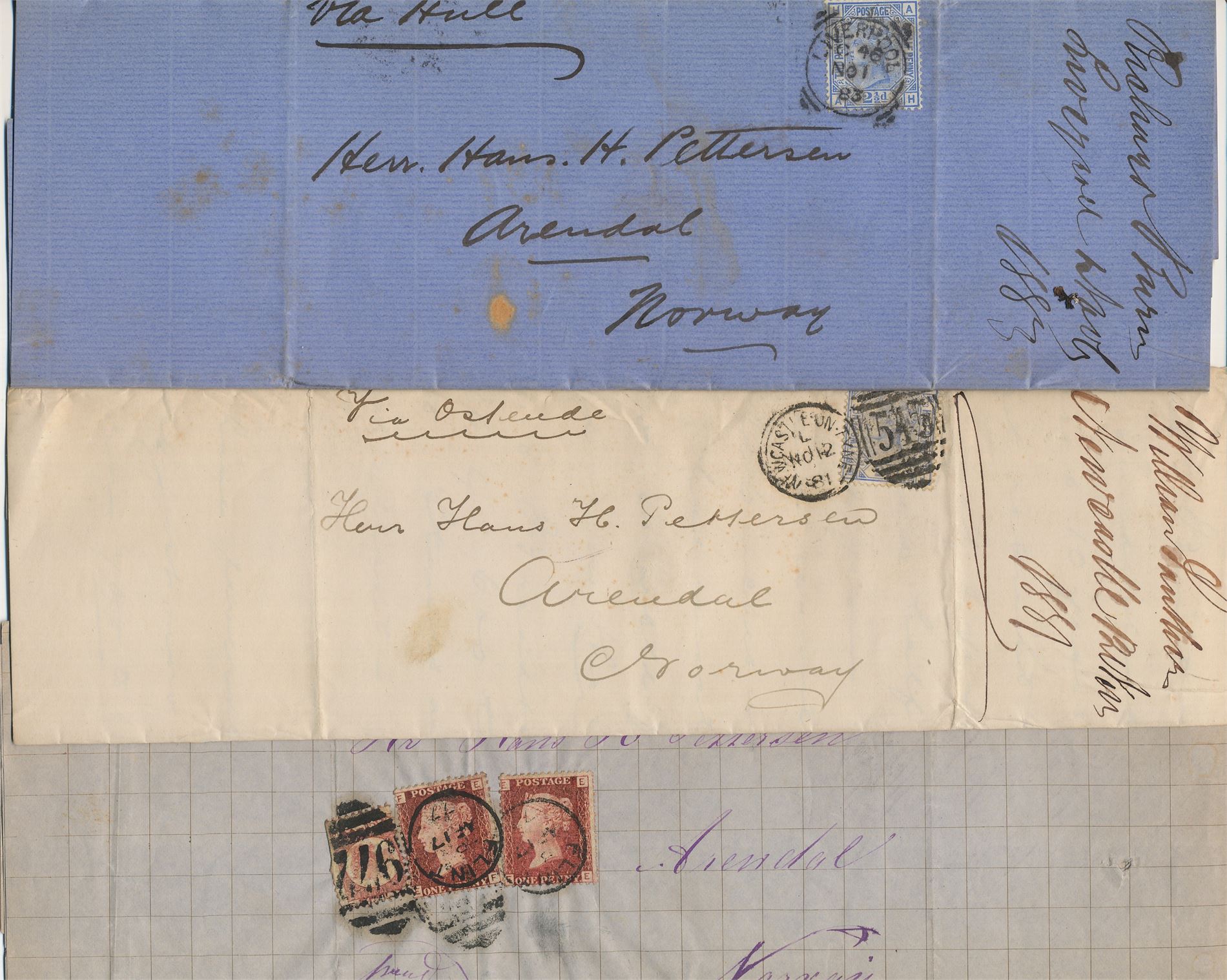 Brevlot 9 helbrev fra div. land i Europa 1870/80-tallet, alle sendt til Arendal.
