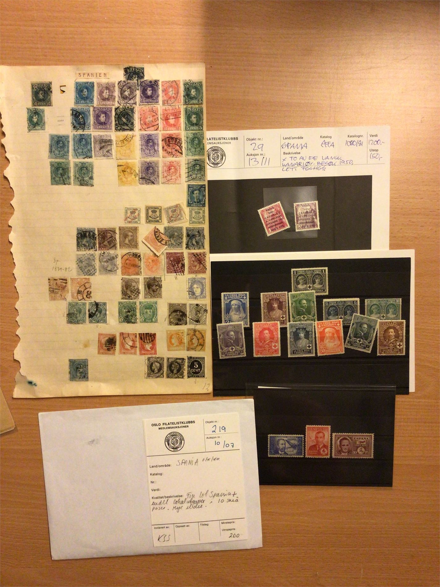Spania Gamle albumark, instikkskort, auksjonsobjekter mm. Fra Bo.