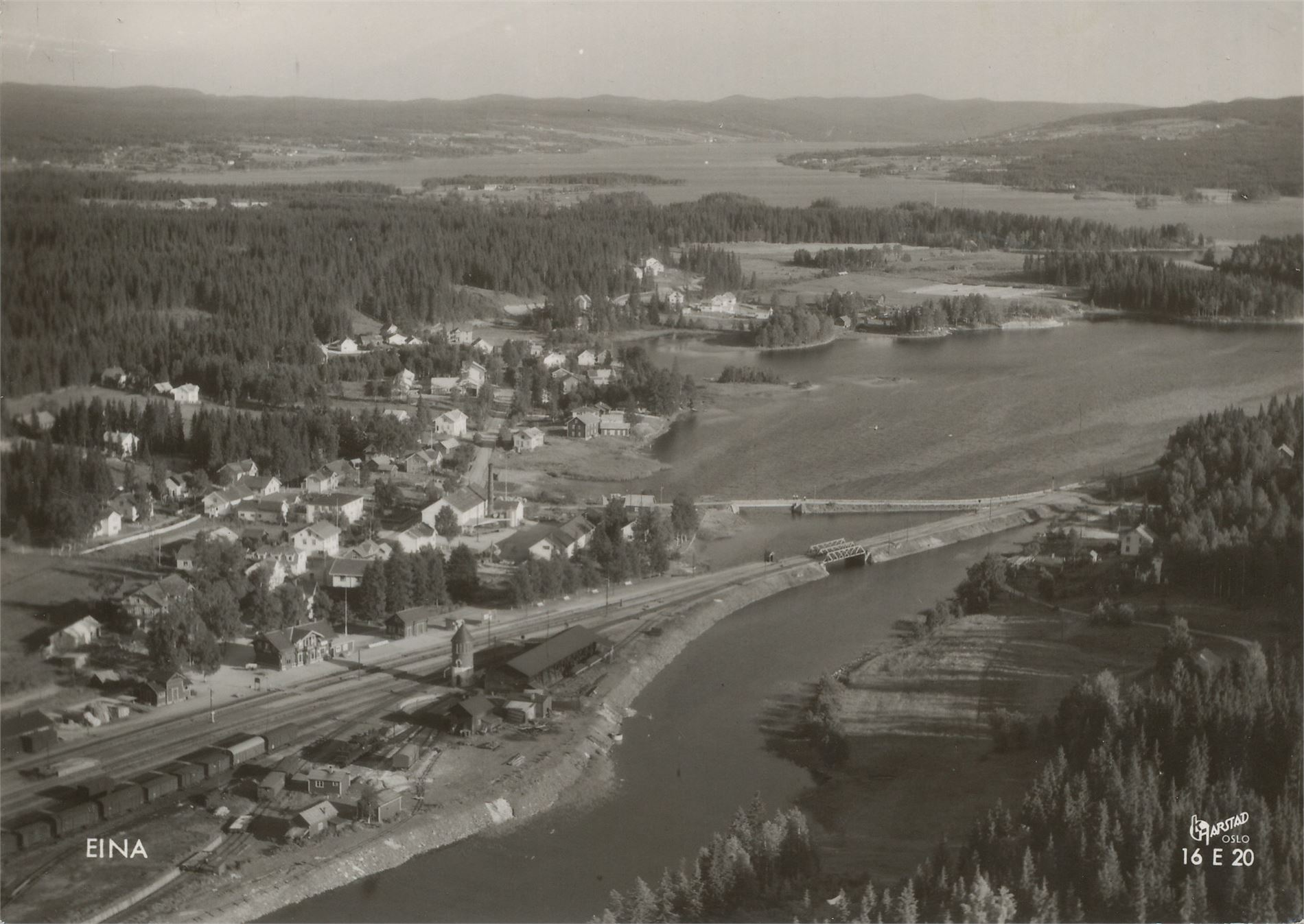 Postkort jernbane EINA med stasjon (OP) A6 s/h (Harstad 16.E.20) brukt 1964