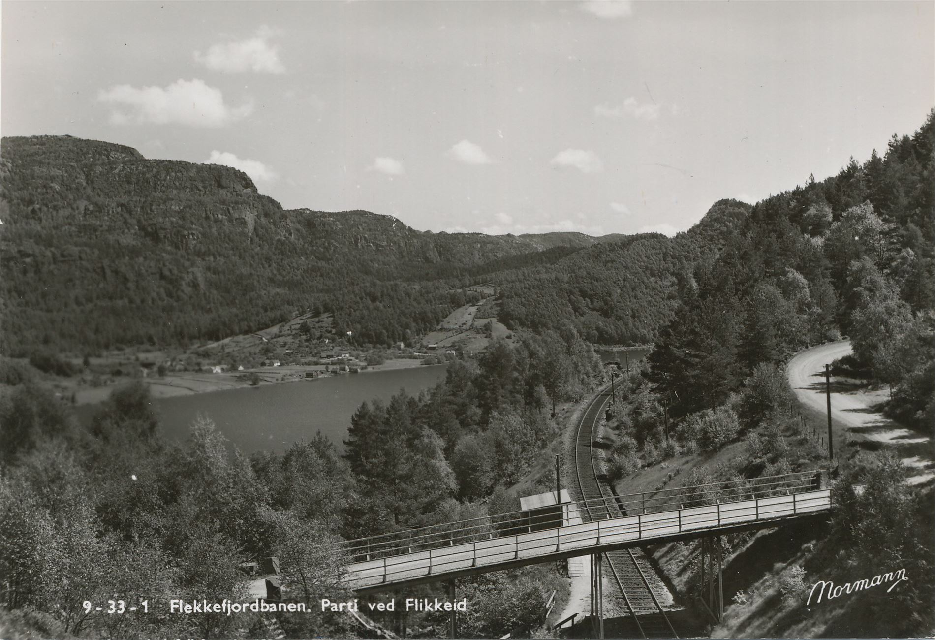 Postkort jernbane FLEKKEFJORDBANEN ved Flikkeid (VA) A6 s/h (Normann 9-33-1) ubrukt