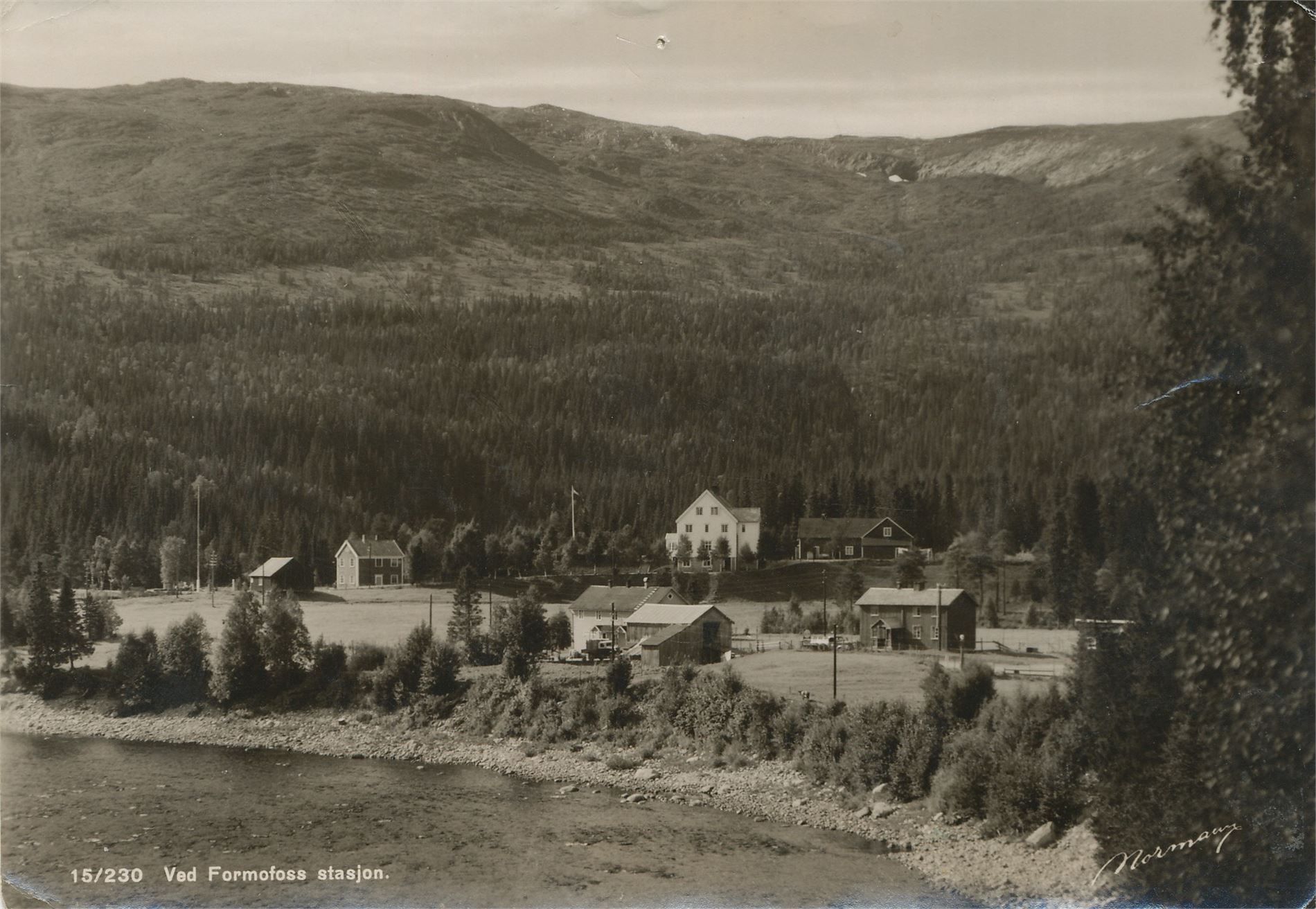 Postkort jernbane FORMOFOSS med stasjon (NT) A6 s/h (Normann 15-230) ubrukt