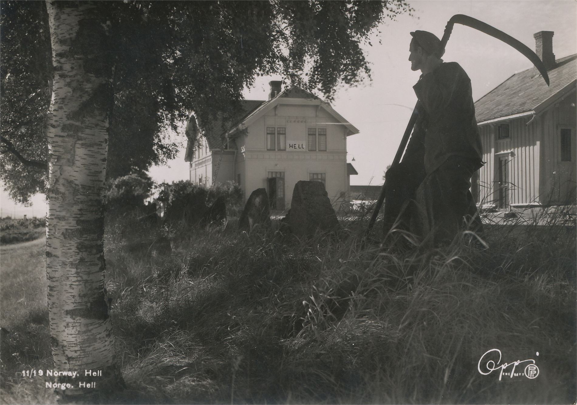 Postkort jernbane HELL med stasjon (NT) A6 s/h (Oppi 11-19) ubrukt