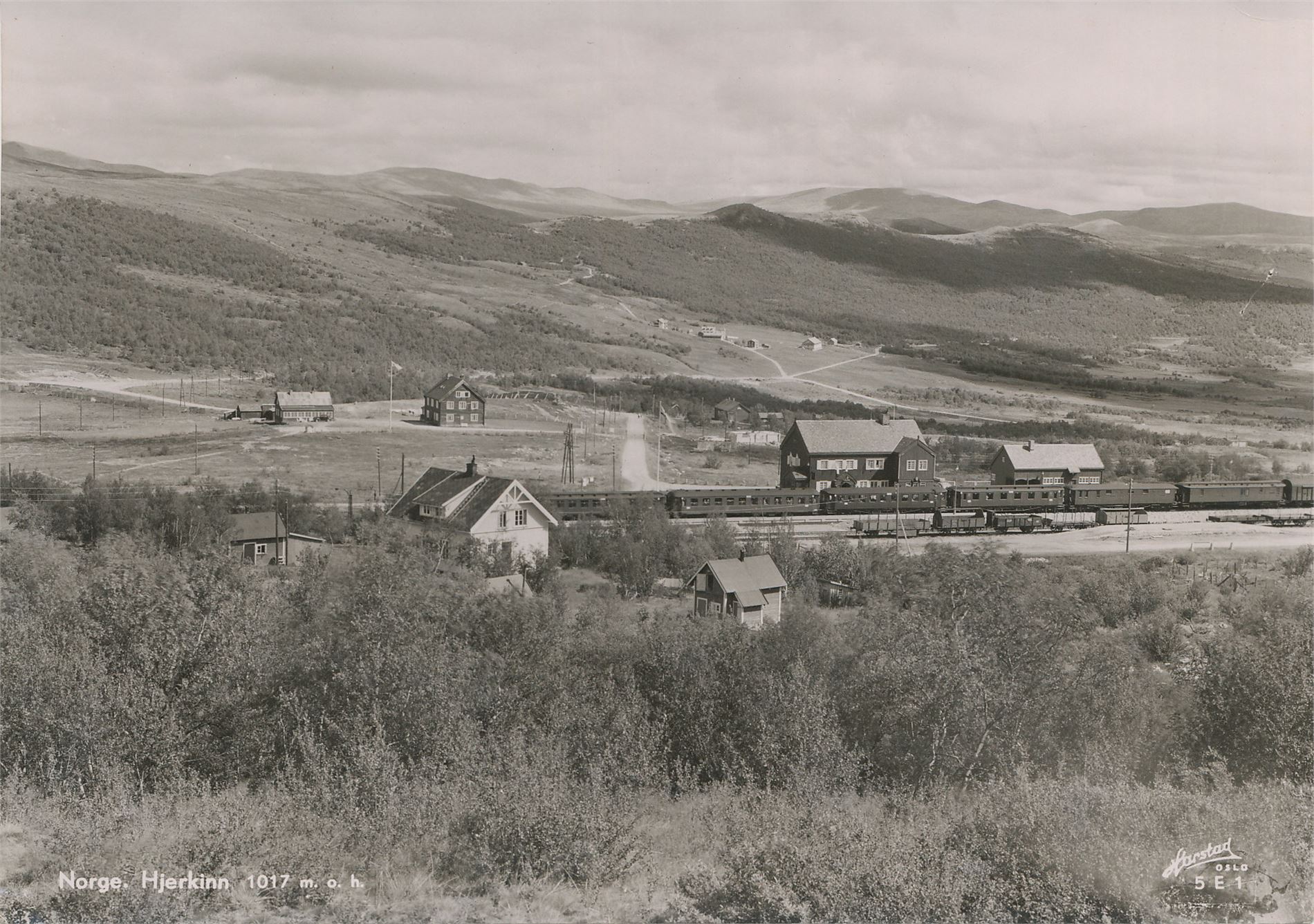 Postkort jernbane HJERKINN med stasjon (OP) A6 s/h (Harstad 5.E.1) ubrukt