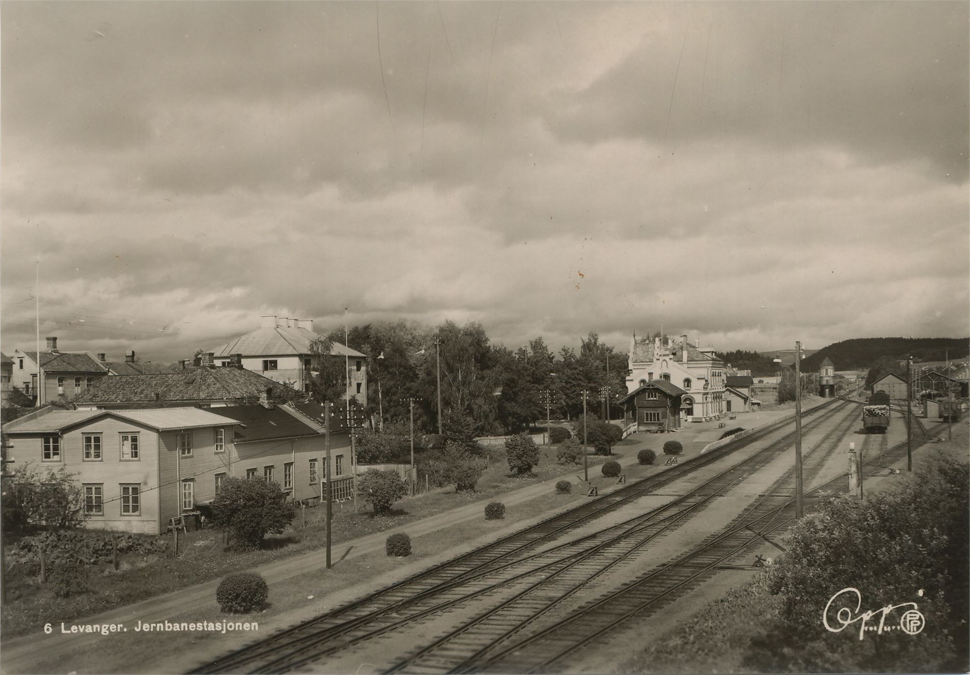 Postkort jernbane LEVANGER stasjon (NT) A6 s/h (Oppi 6) ubrukt