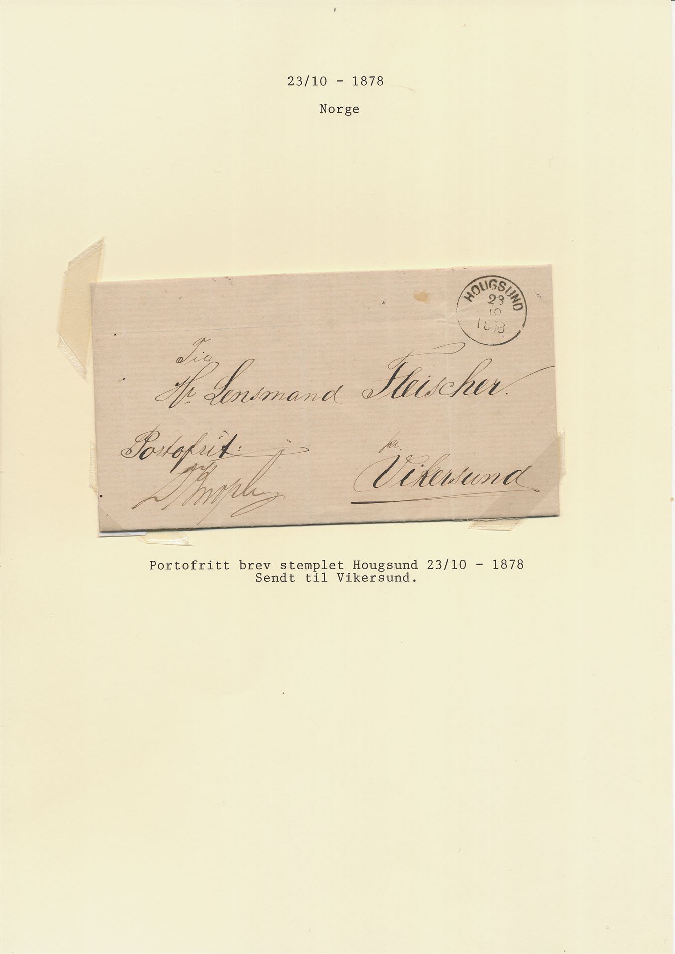 Portofritt Brev st. Hougsund 23/10-1878, sendt til Vikersund