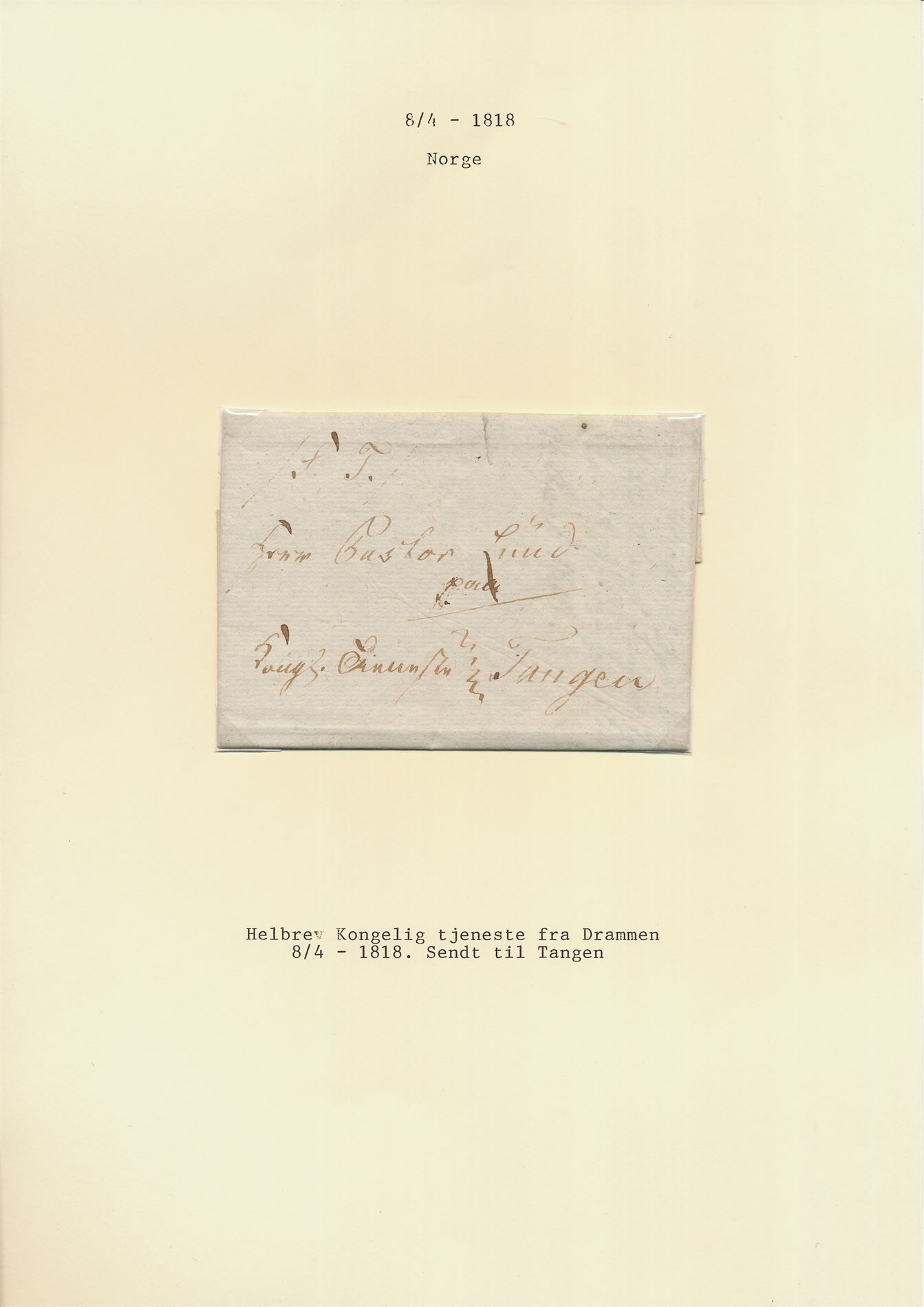 Prefil Helbrev, Kongelig tjeneste fra Drammen 8/4-1818, sendt til Tangen