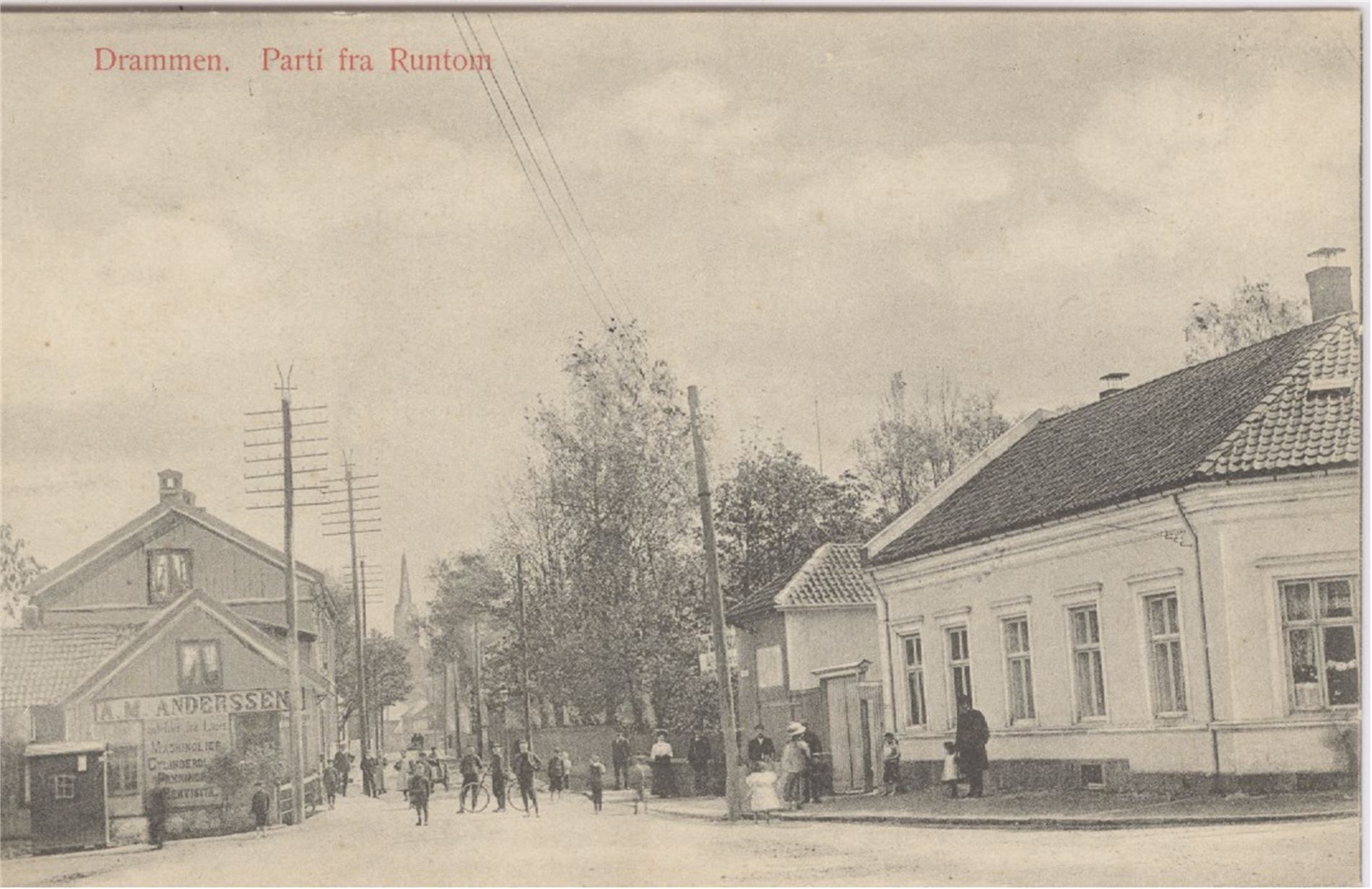 Drammen, Parti fra Runtom (EJ,3177) UB kort med barn i gata