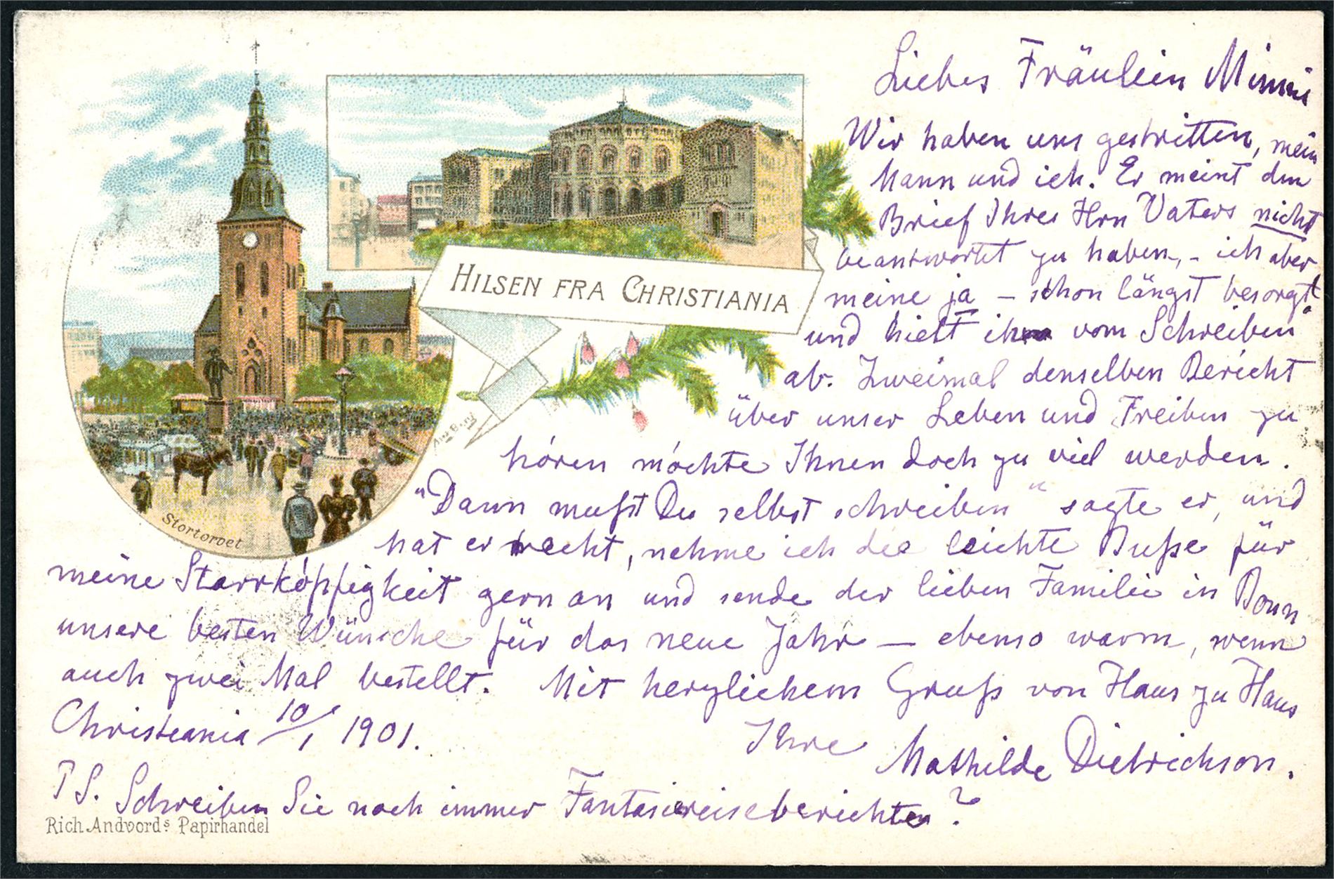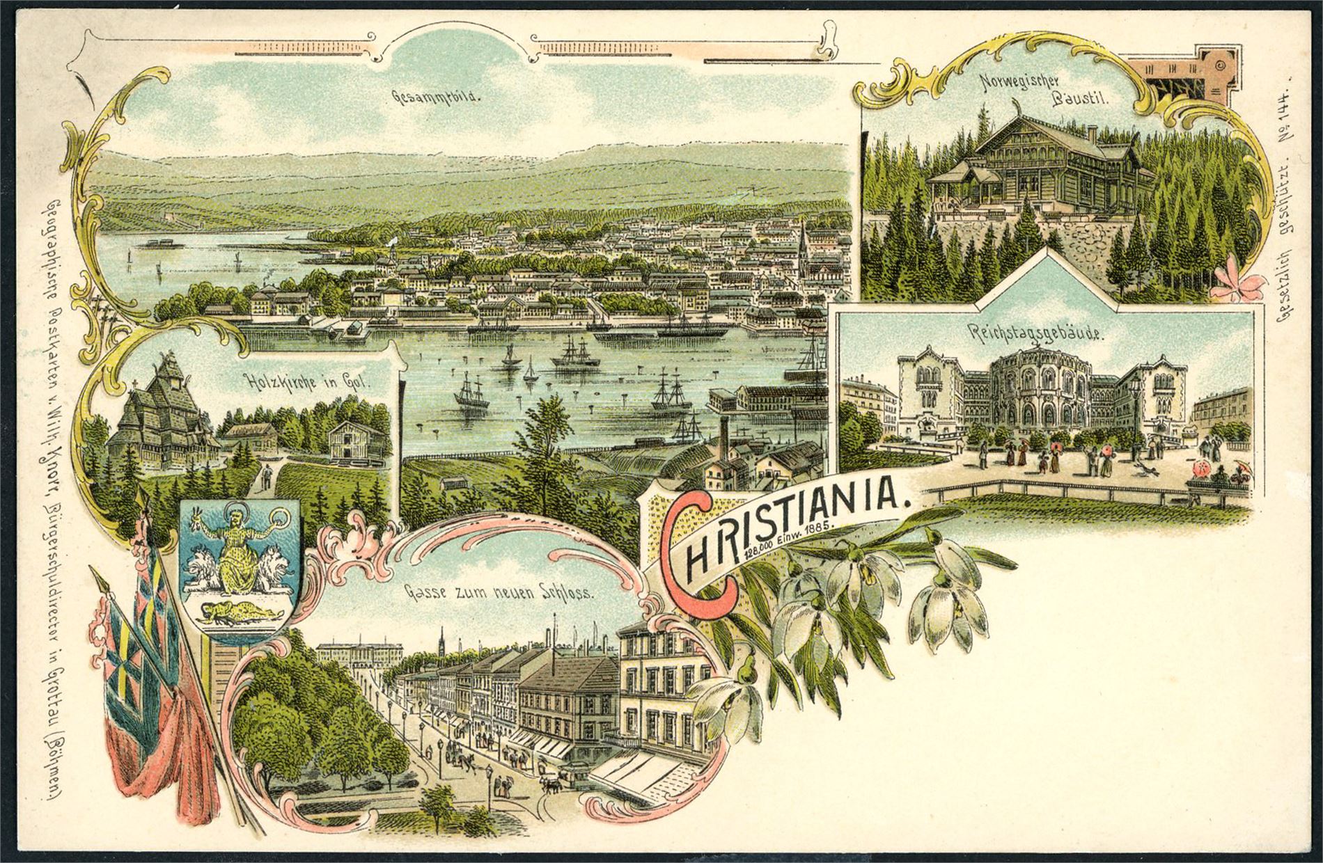 Hilsen fra Kristiania. 68 kort, alle med udelt bakside. Mange i farger.