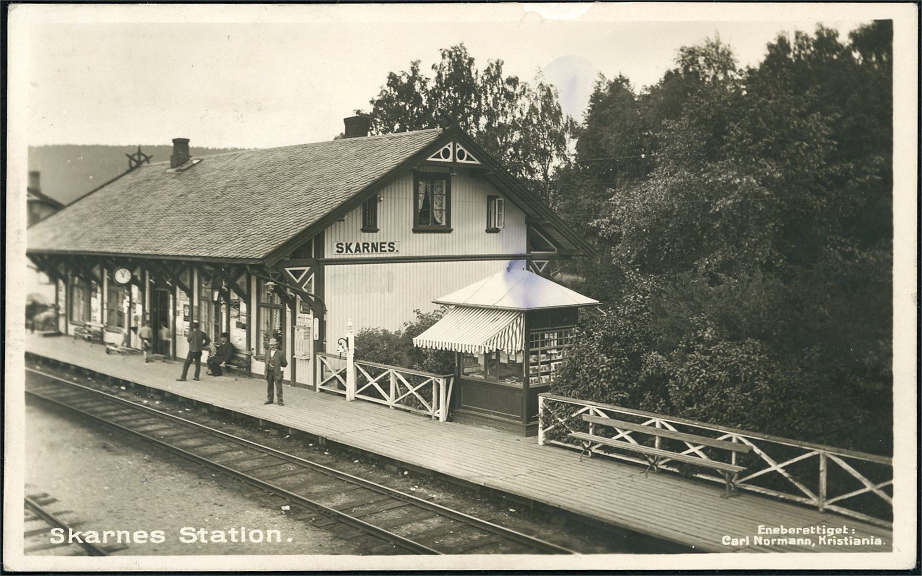Skarnes Station. Fotokort, brukt i 1915. frimerket mangler. K-2