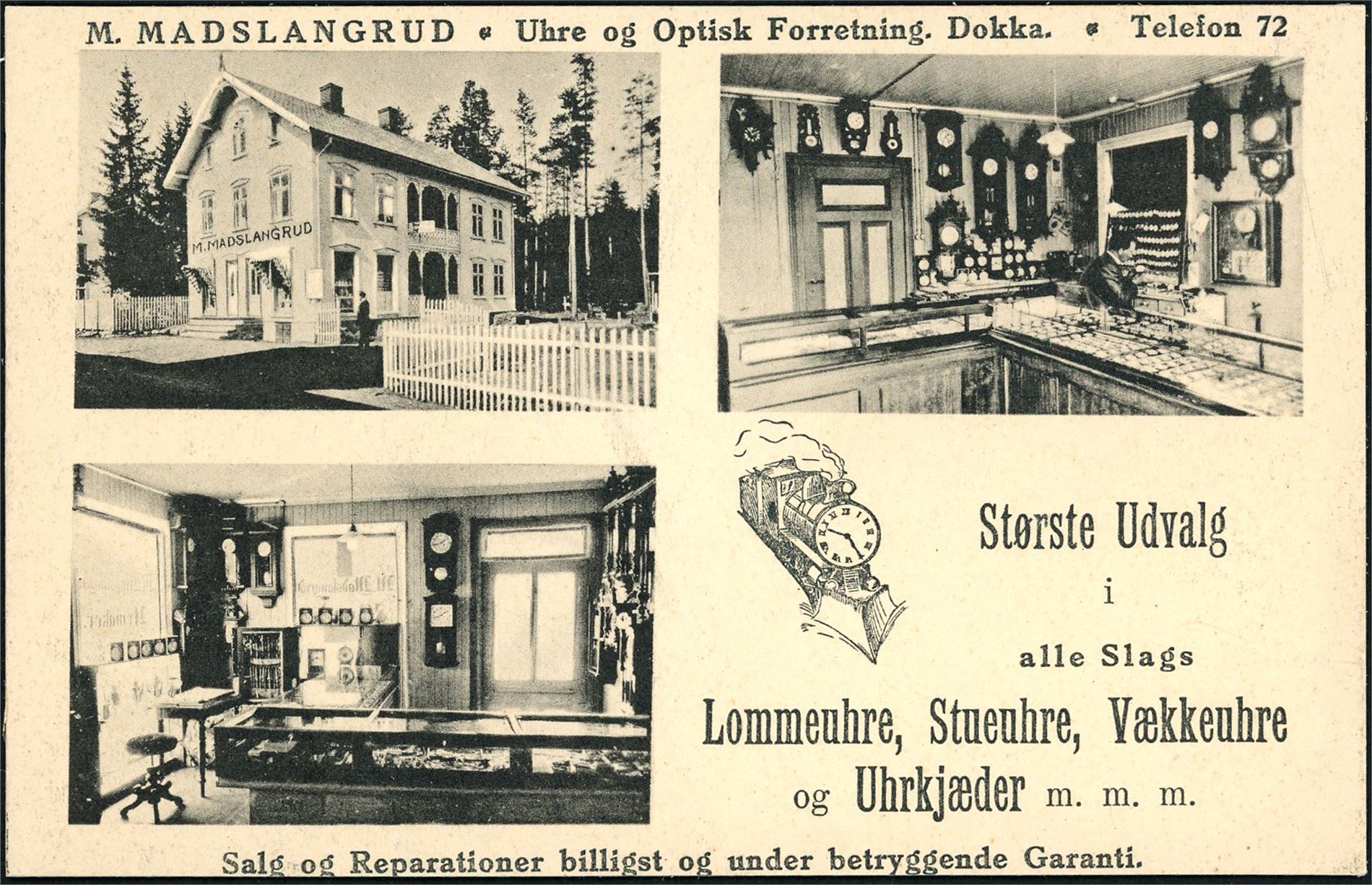 M. Madslangrud Uhre og Optisk Forretning. Dokka. K-1