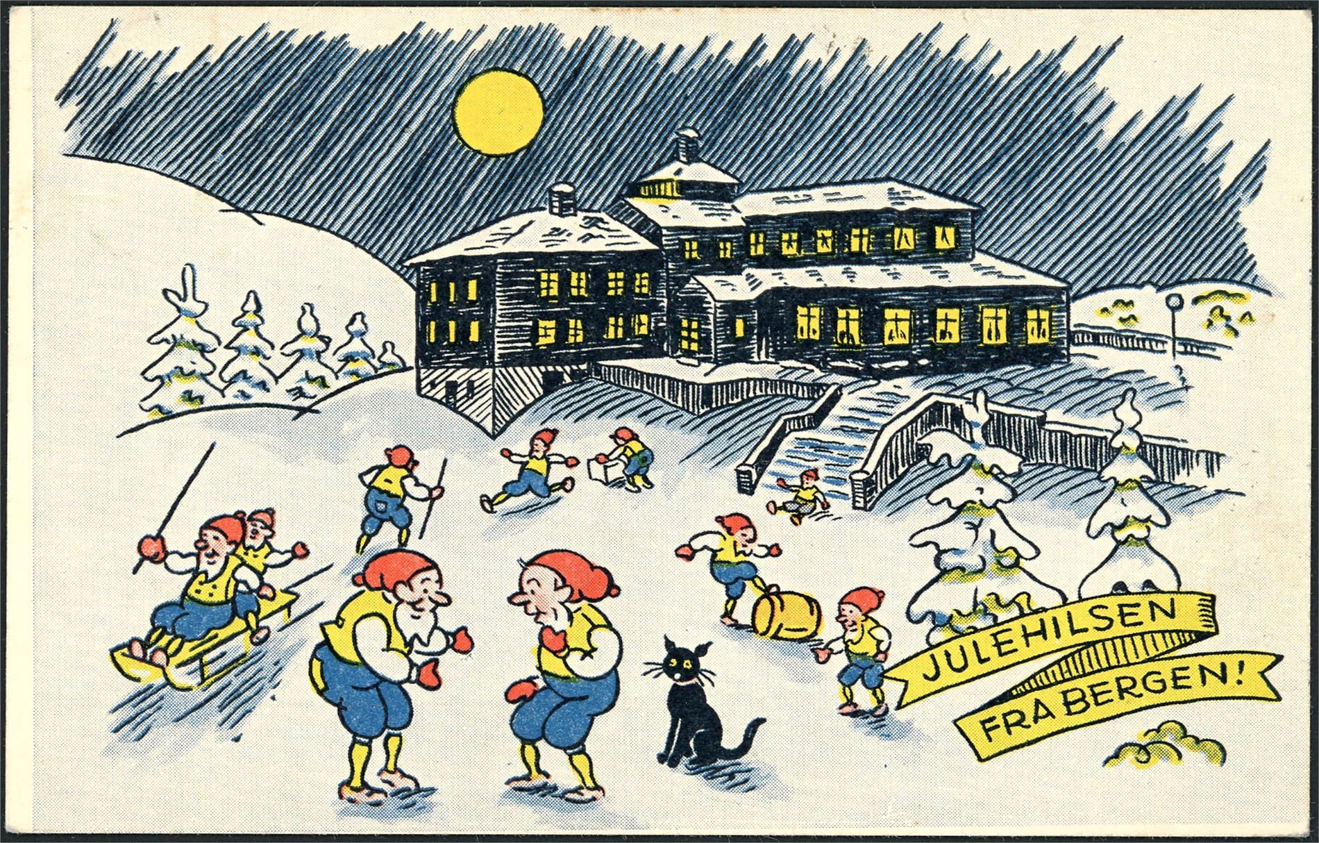 Julehilsen fra Bergen. Stemplet "Bergen 21.12.32". K-1