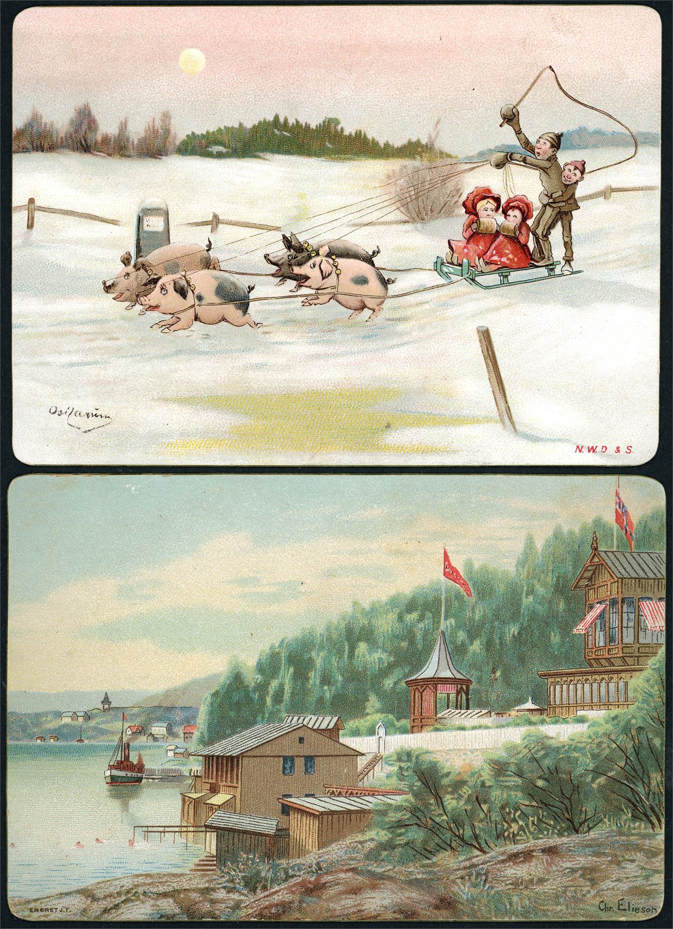 Ca 240 kartong-/overrekkelseskort. Flere signerte, og jevnt over god kvalitet.
