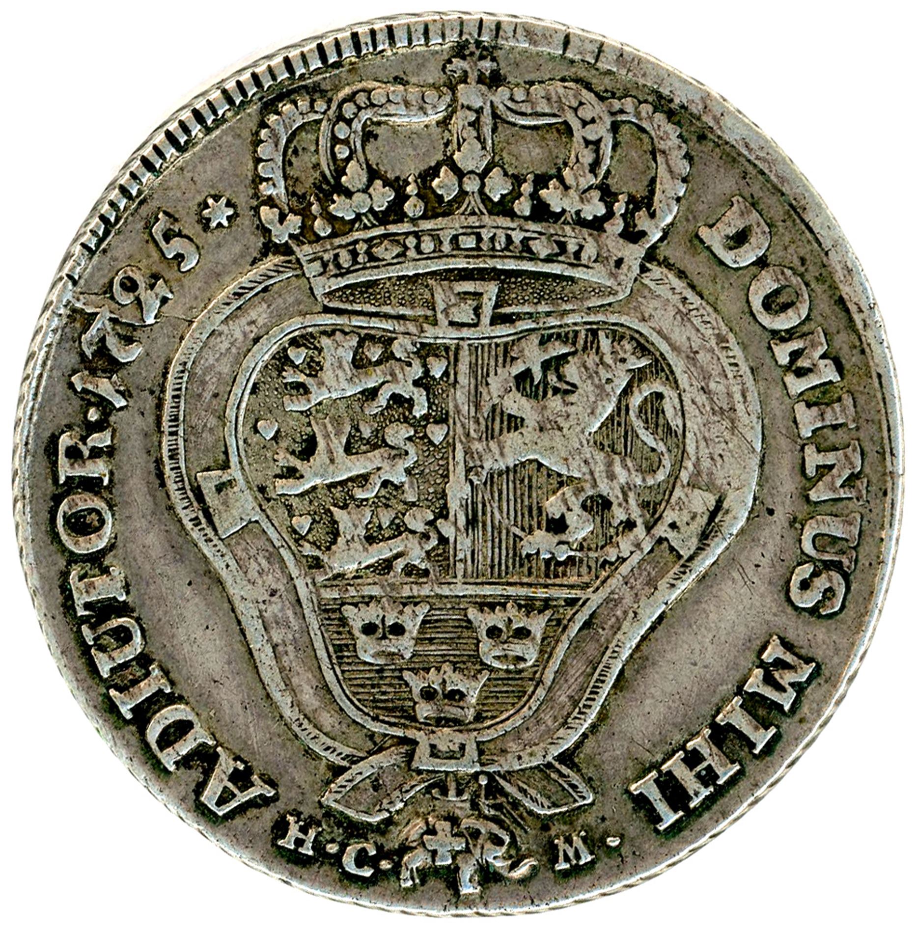 Speciedaler 1725. Tydelig preg, men med noen riper. 1