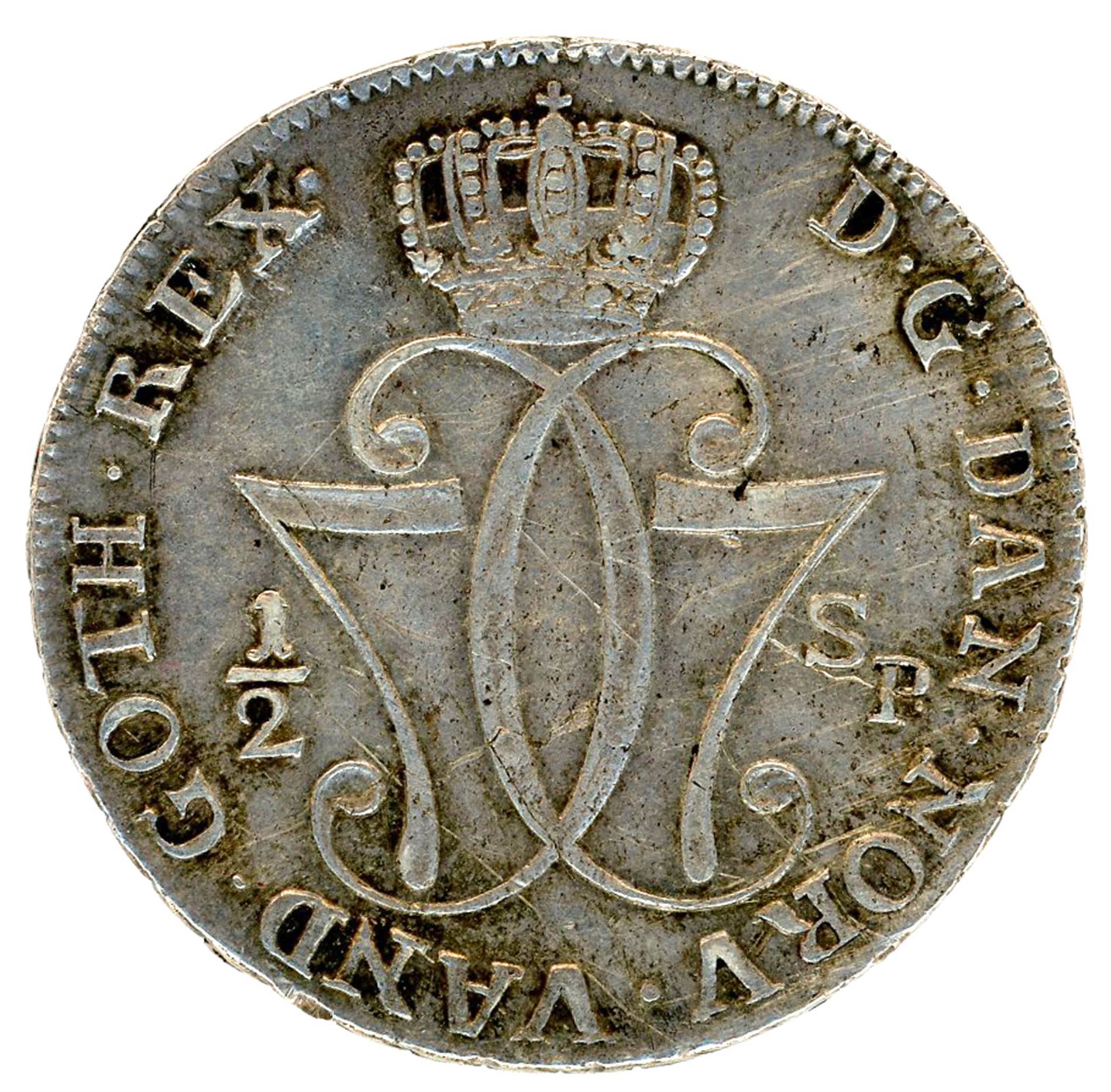 1/2 Speciedaler 1777. Svake riper. NM 18, KM 252. 1+