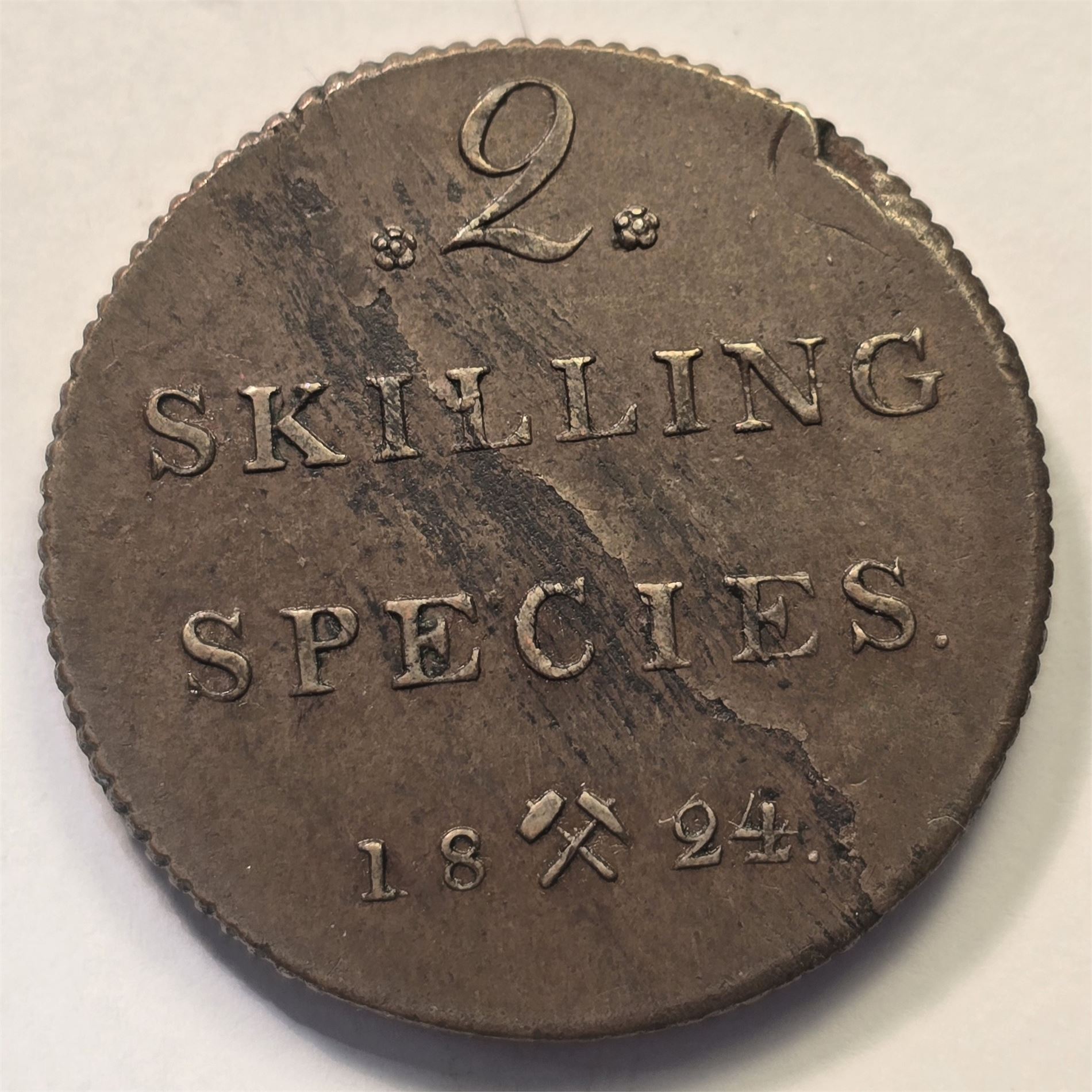 2 skilling 1824. 1+