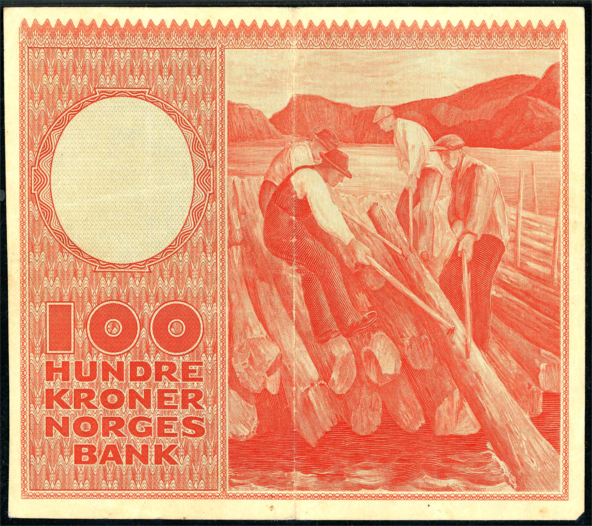 100 kroner 1954, serie Z.0189633. Erstatningsseddel. PMG 35