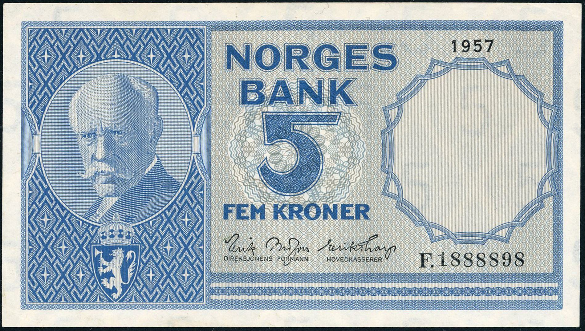 5 kroner 1957, serie F.1888898. 0