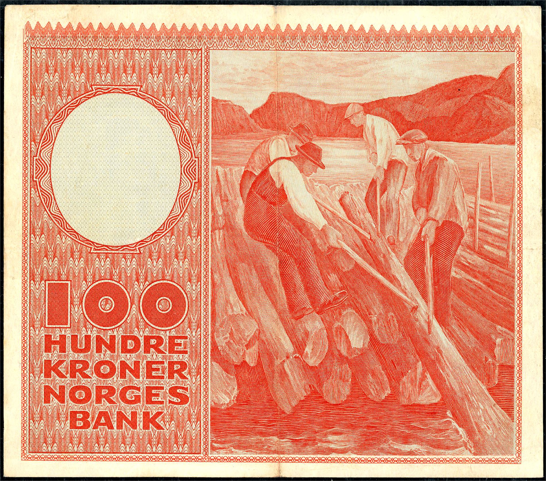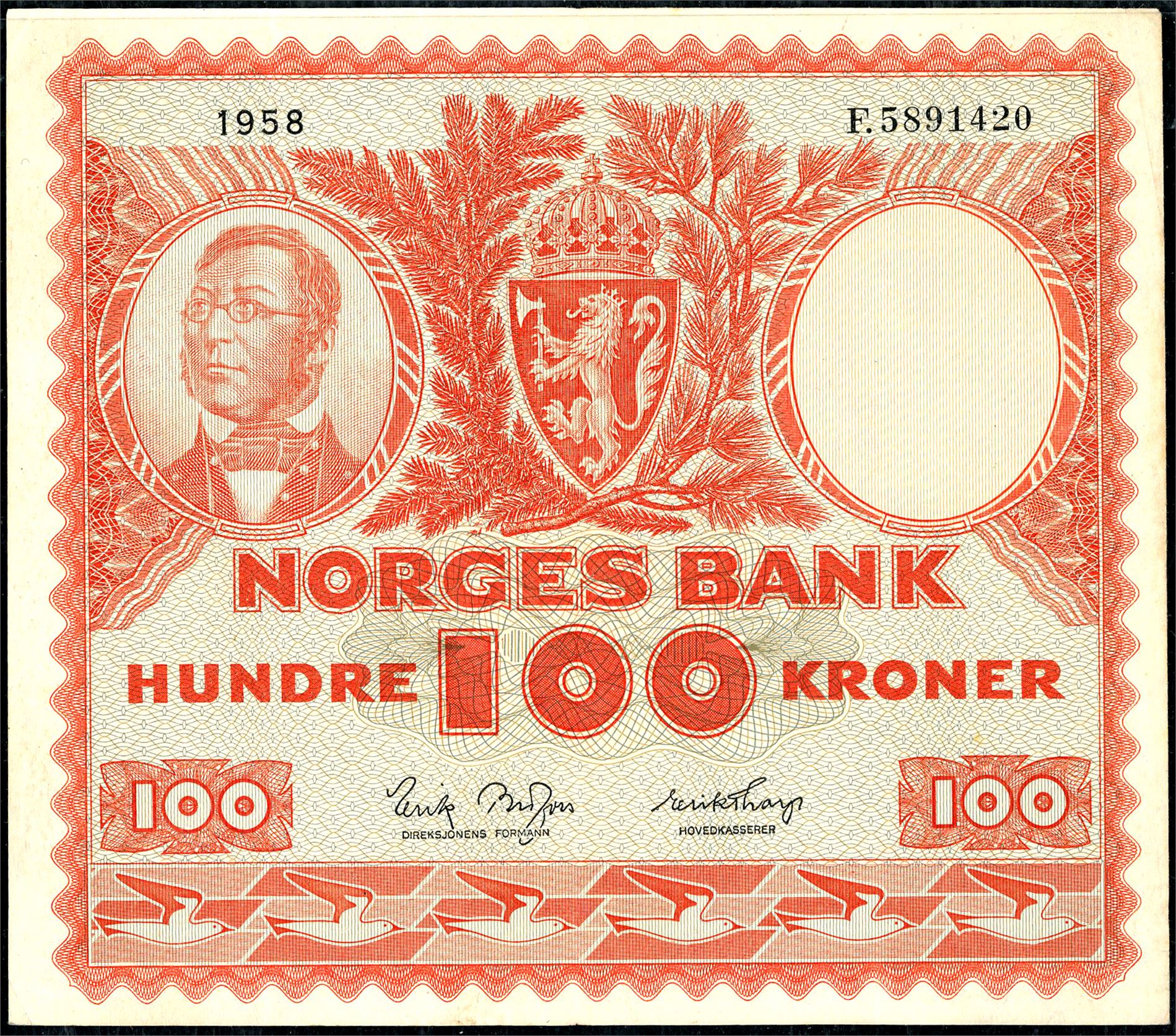 100 kroner 1958, serie F.5891420. 2