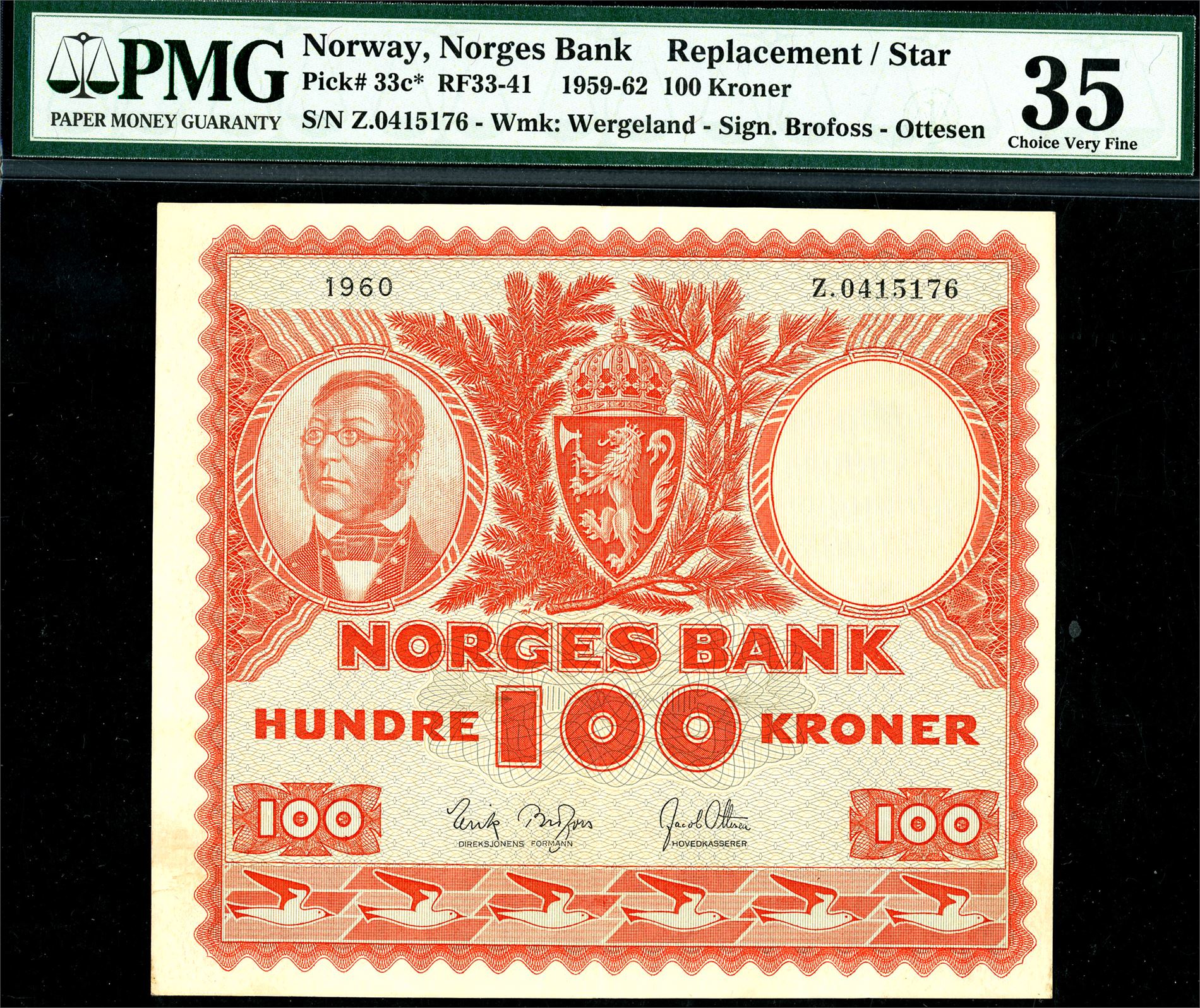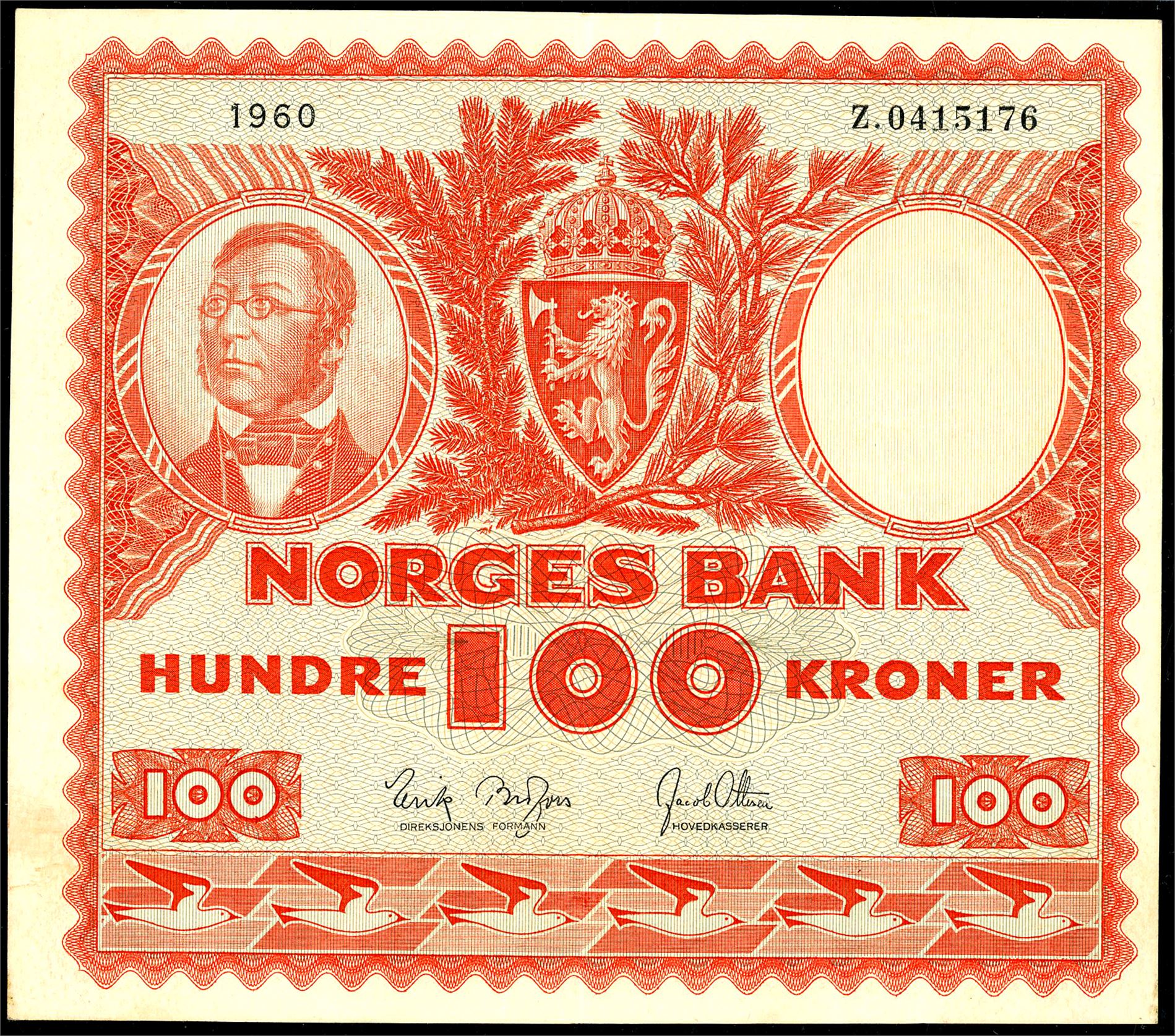 100 kroner 1960, serie Z.0415176. Erstatningsseddel. PMG 35