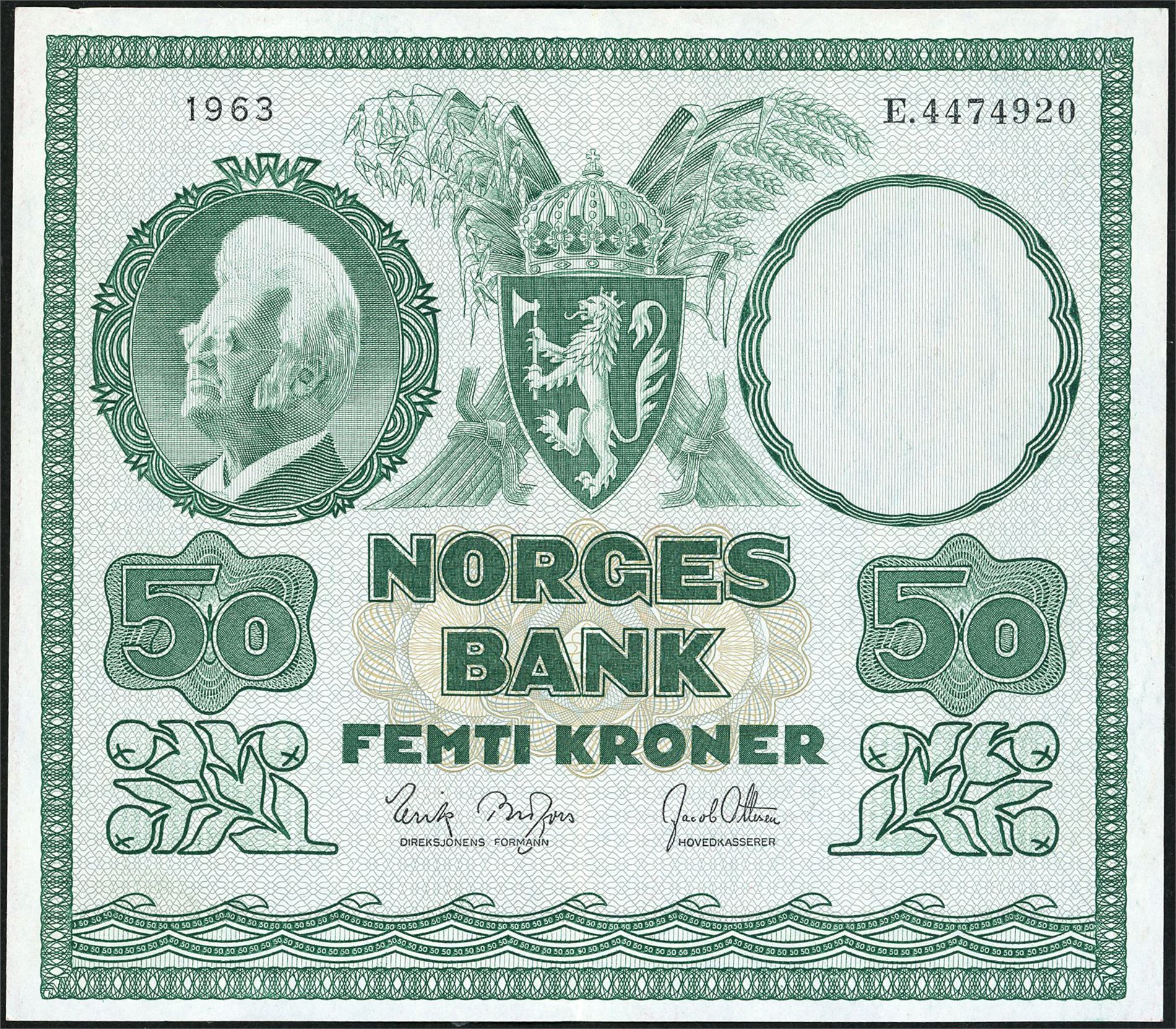 50 kroner 1963, serie E.4474920. 2