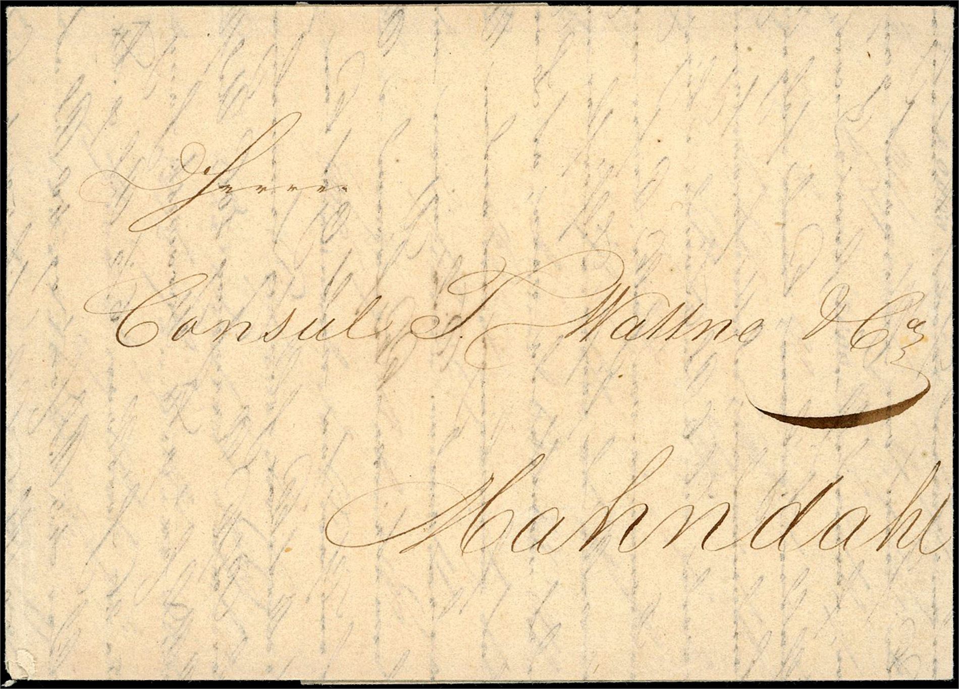 A complete letter, dated "Riga 22.2.1818" and sendt to Mandal, Norway. Sent via Ystad and Stralsund.