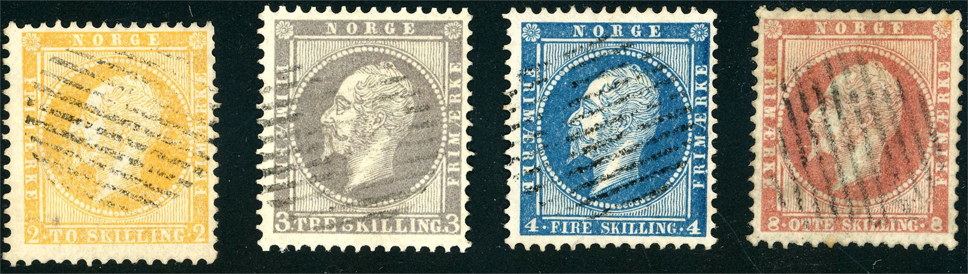 2/5. Skilling Oscar i komplett serie, alle anert med riststempel.