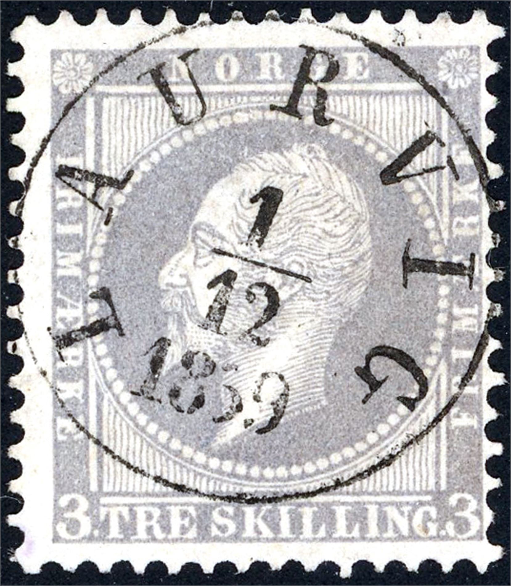 3. 3 skilling Oscar, pent fullstemplet "Laurvig 1.12.1859".