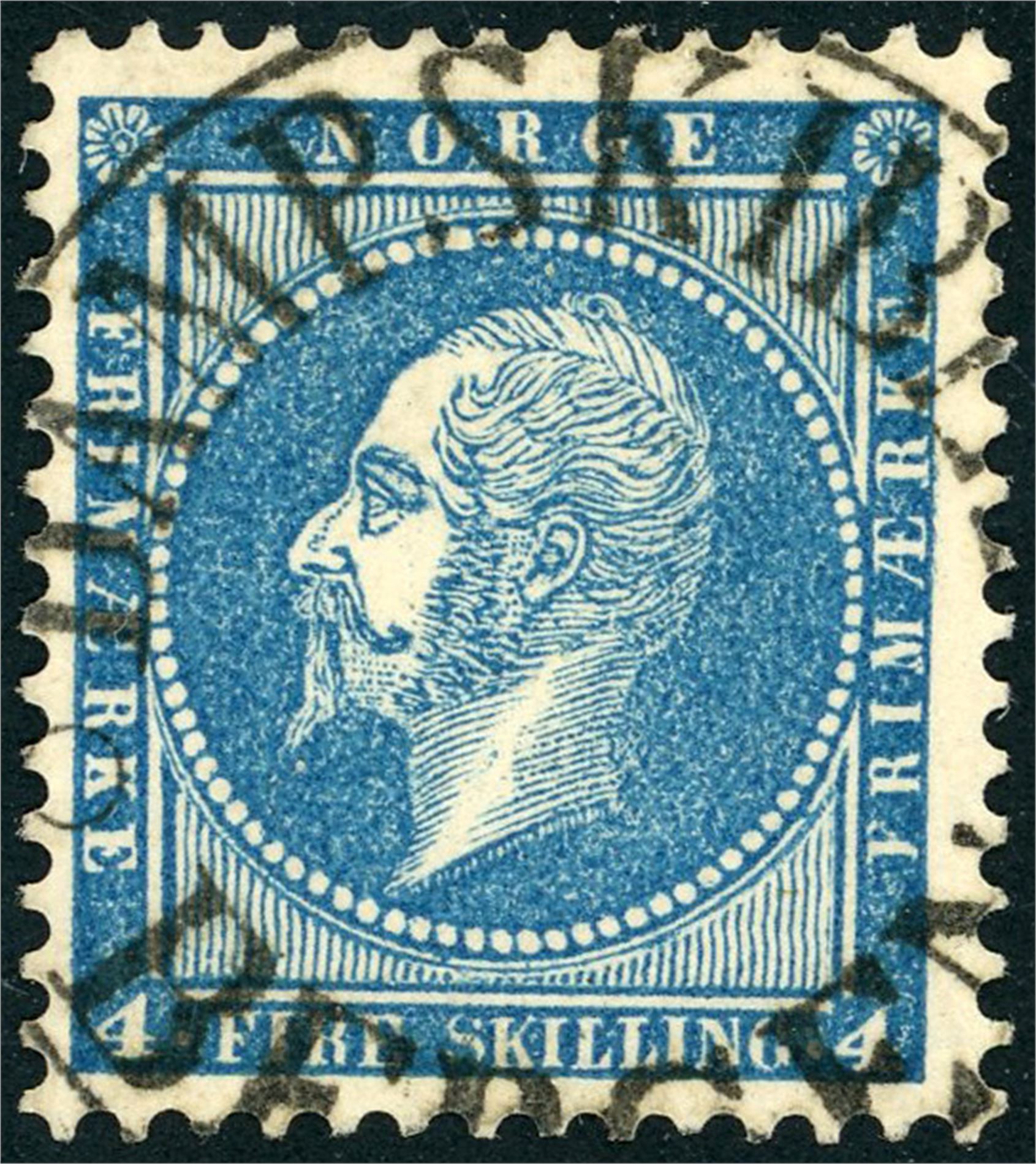 4. 4 skilling Oscar anert med et rettvendt "Dampskibet Bergen". Luksus.