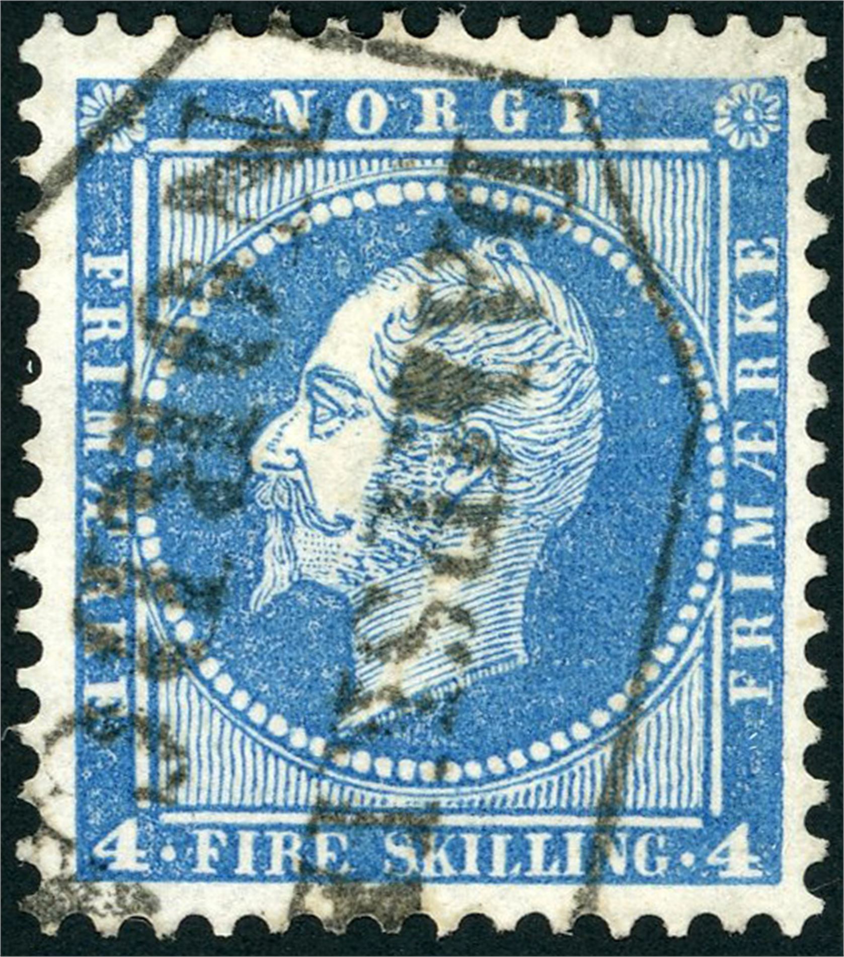 4. 4 skilling Oscar, aner med det 8-kantete "Dampskibet Nordcap". Meget vakkert merke.
