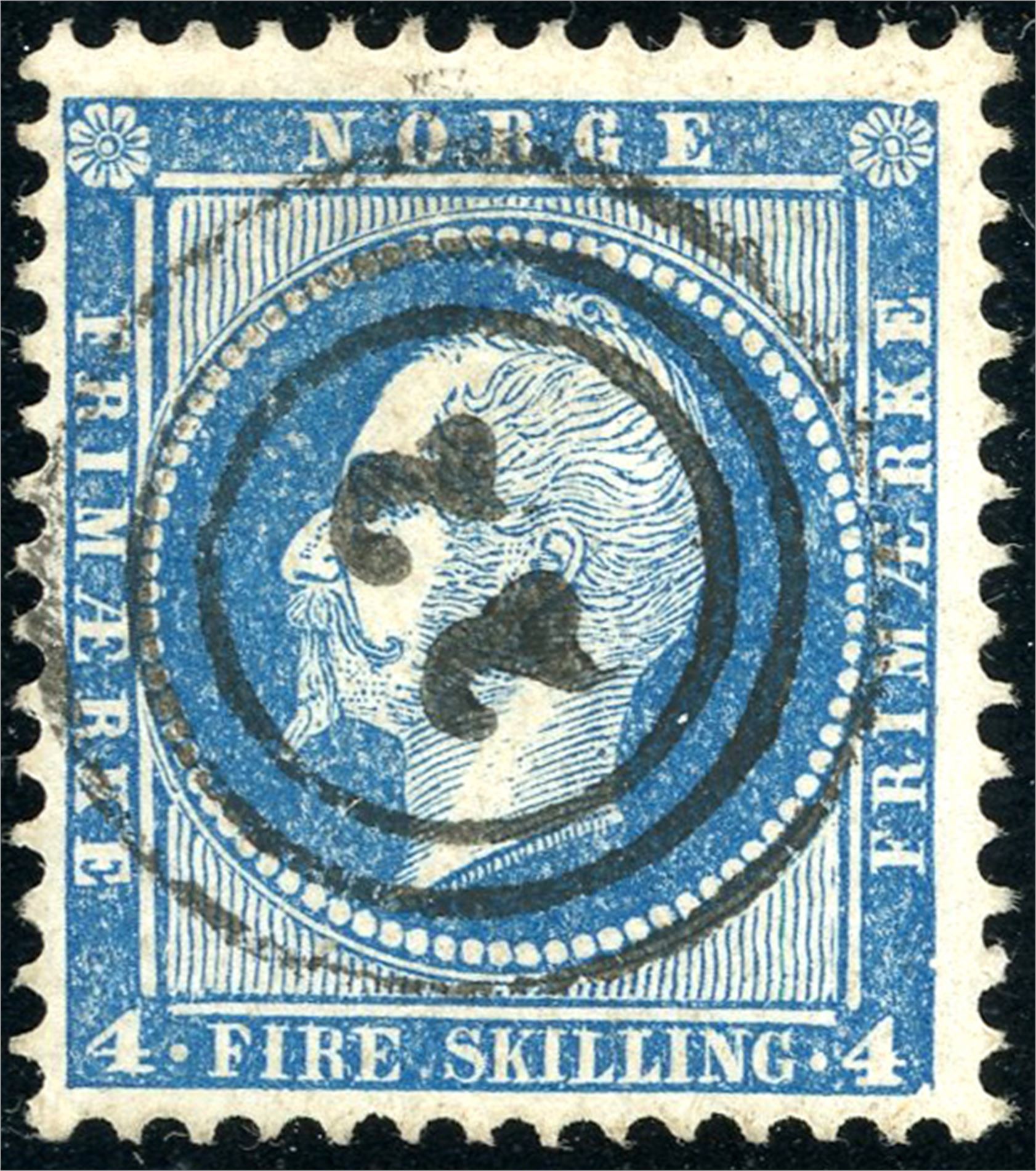 4. 4 skilling Oscar anert nummerstempel "22" (Balstad, NO, 5 pkt).