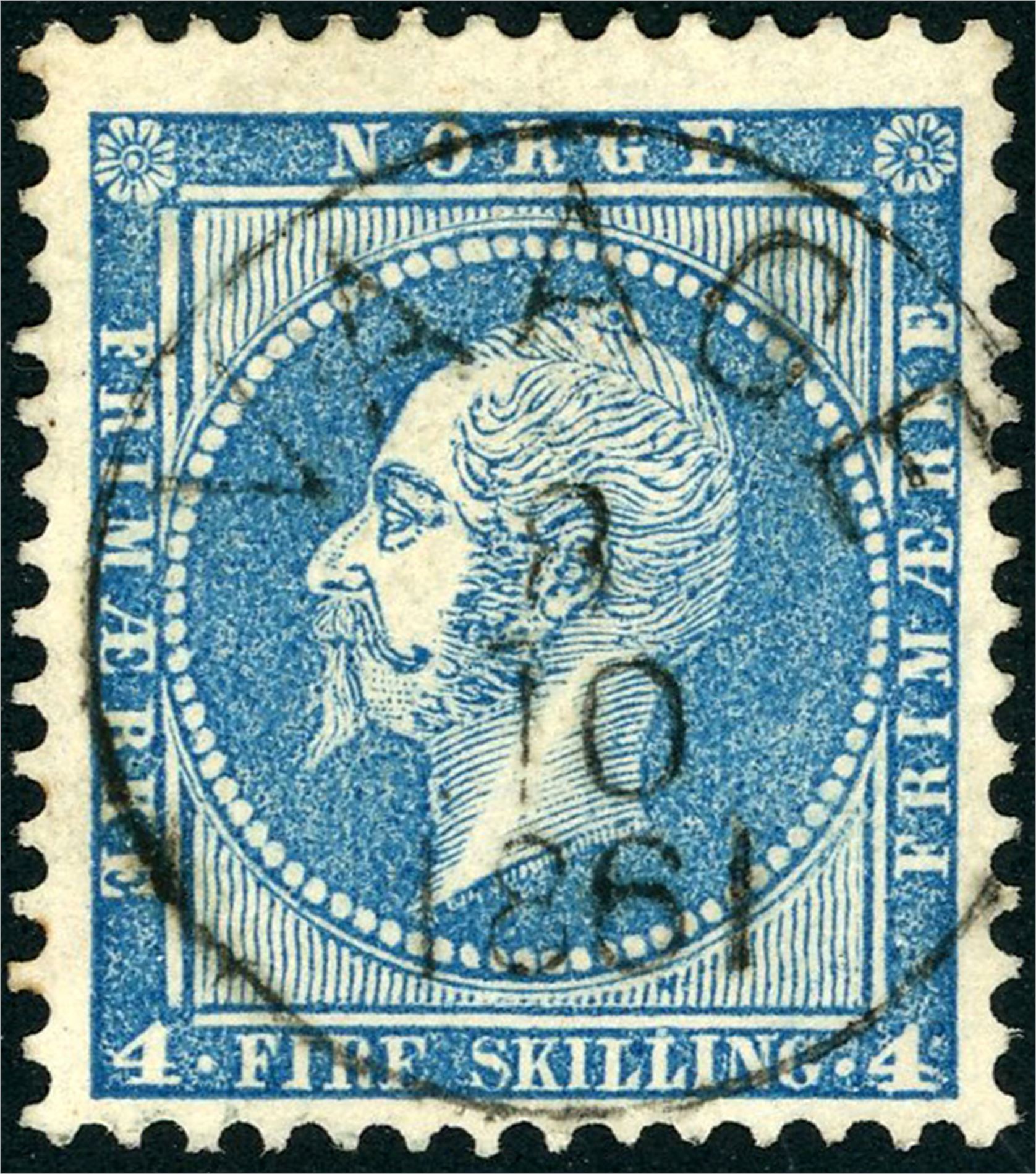 4. 4 skilling Oscar, rettvendt fullstemplet "Vaage 8.10.1861" (OP, 6 pkt).