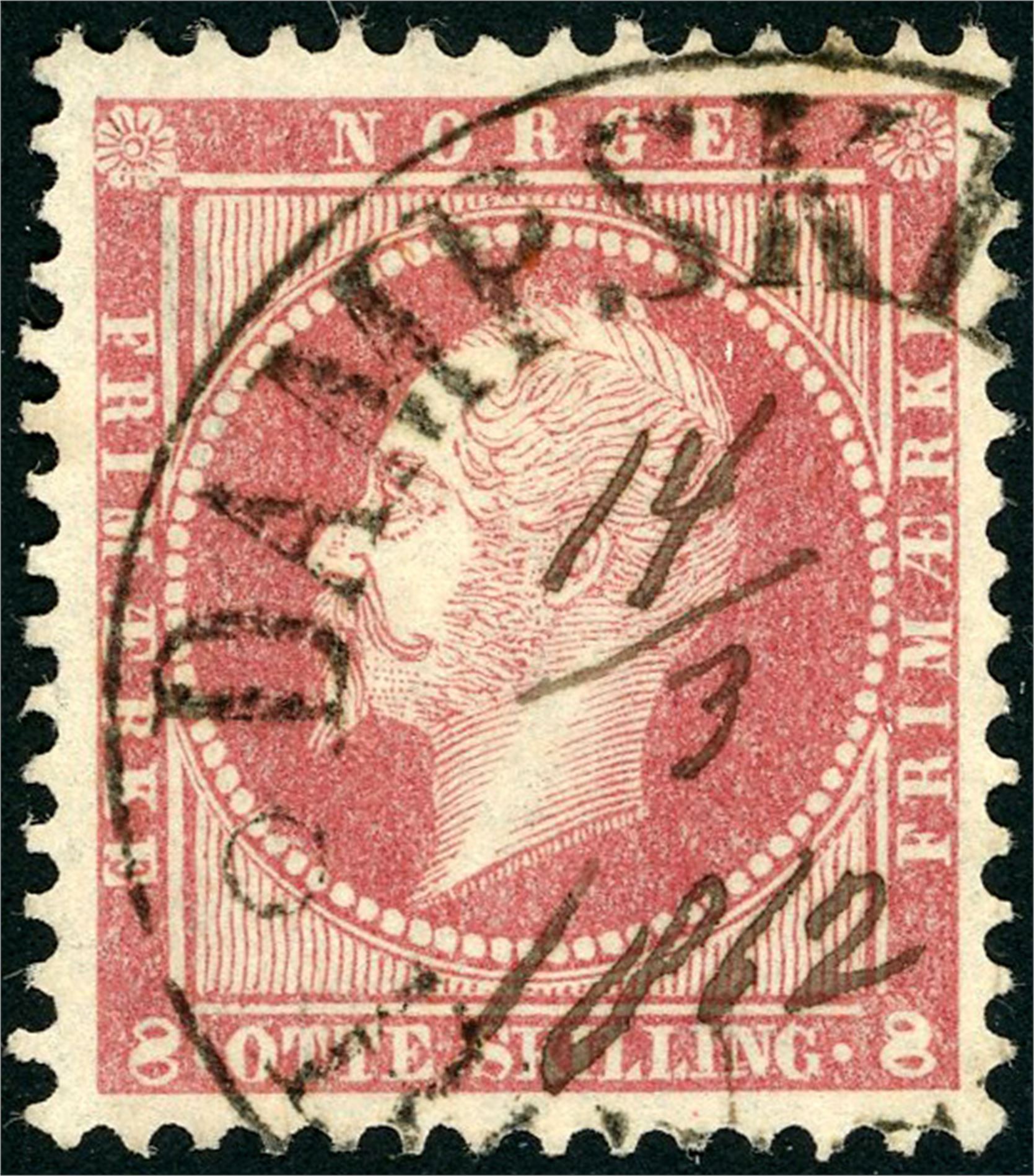 5. 8 skilling Oscar, anert med "Dampskibet Bergen", der datoen "14/3 1862" er skrevet med blekk.
