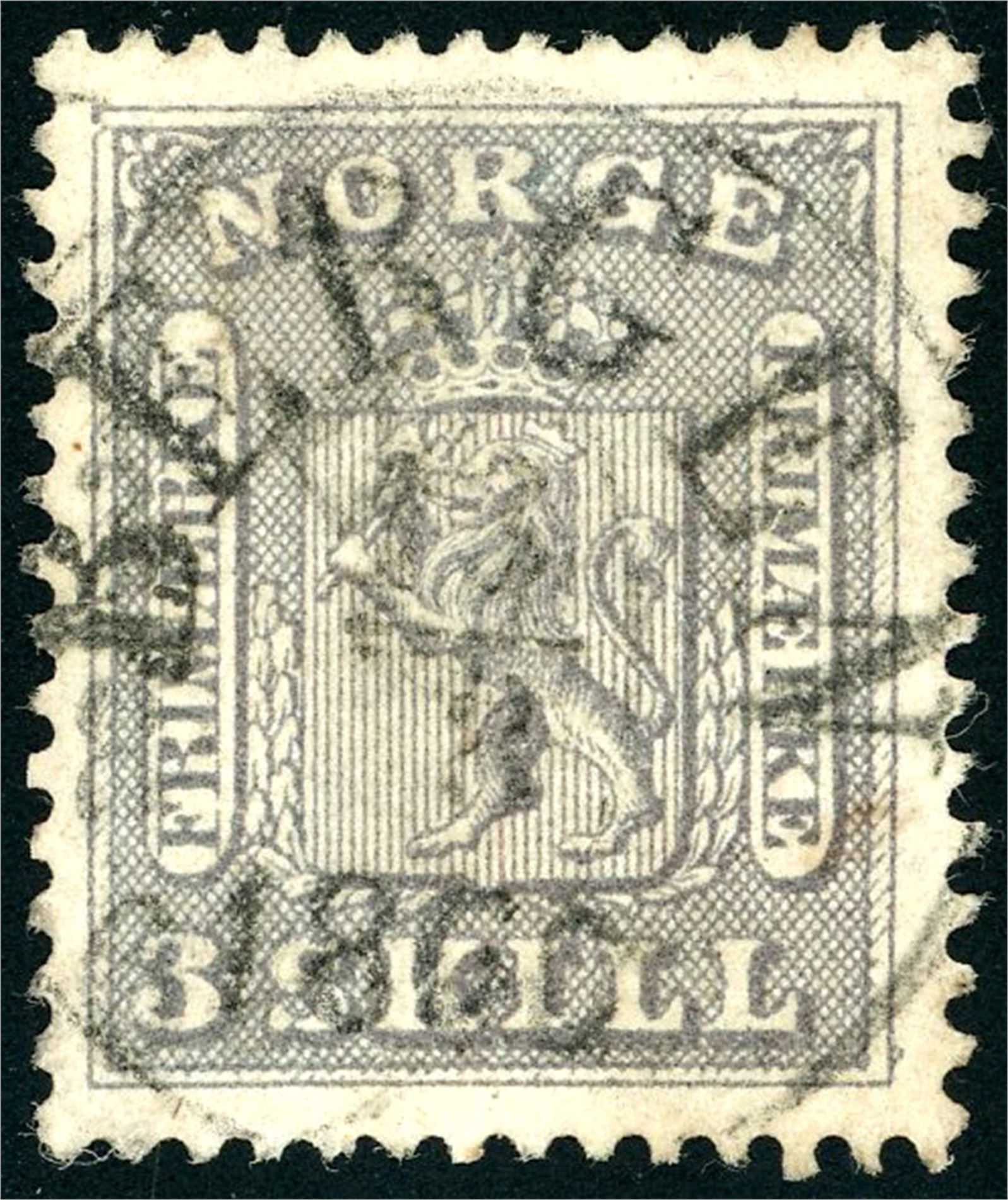 7. 3 skill, rettvendt stemplet "Bergen 13.3.1866". Merket med god farge.