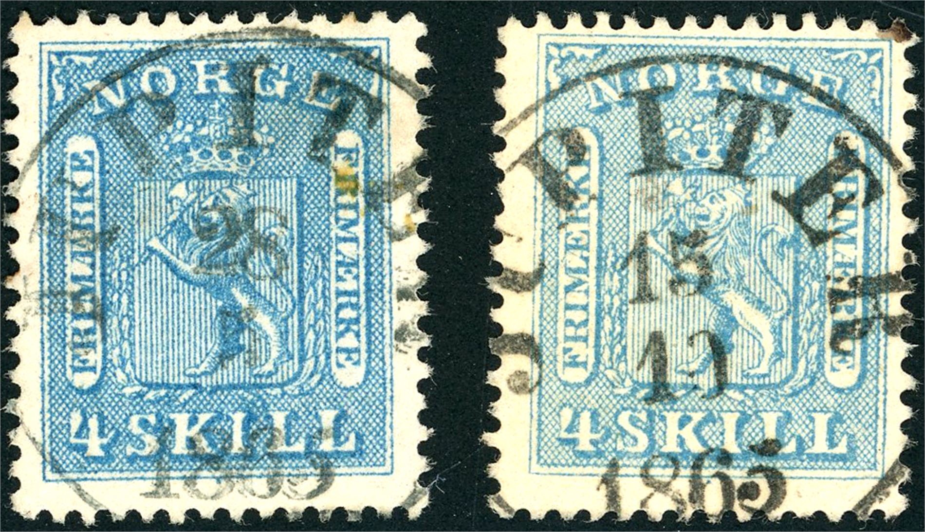8 I,II. To 4 skill, begge anert med et rettvendt skipsstempel "Jupiter" i 1865.